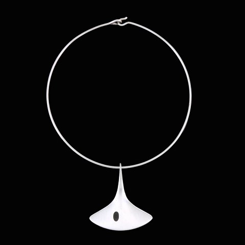 Hans Hansen. Moderne Halsring i Sterling sølv med emaljevedhæng #323 - Bent Gabrielsen.