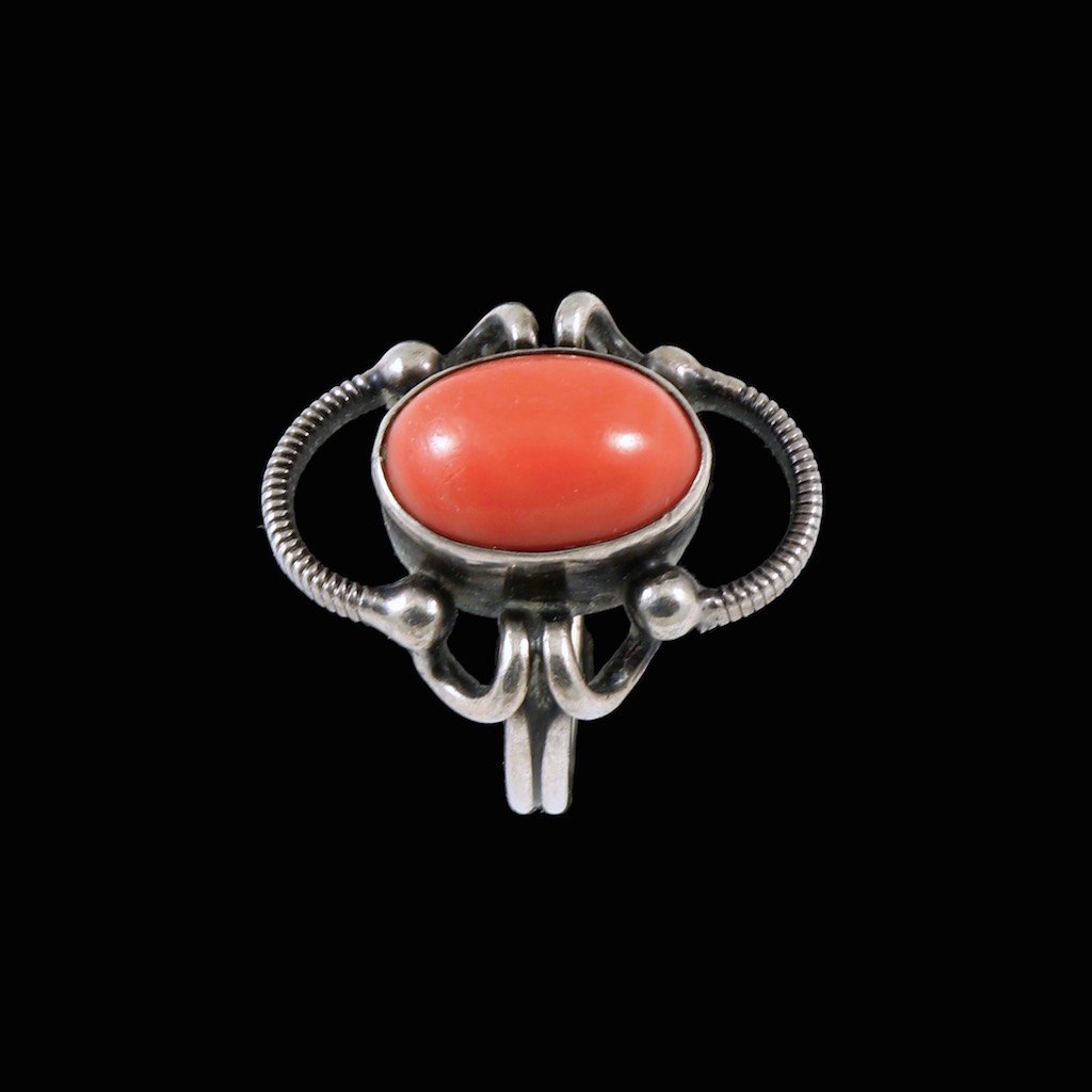 Bodil Hendel Rossenhoff. Skønvirke ring i sølv med koral.