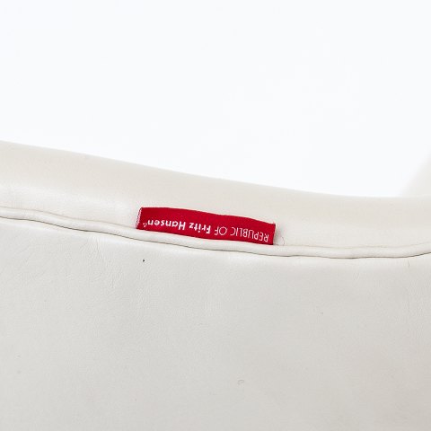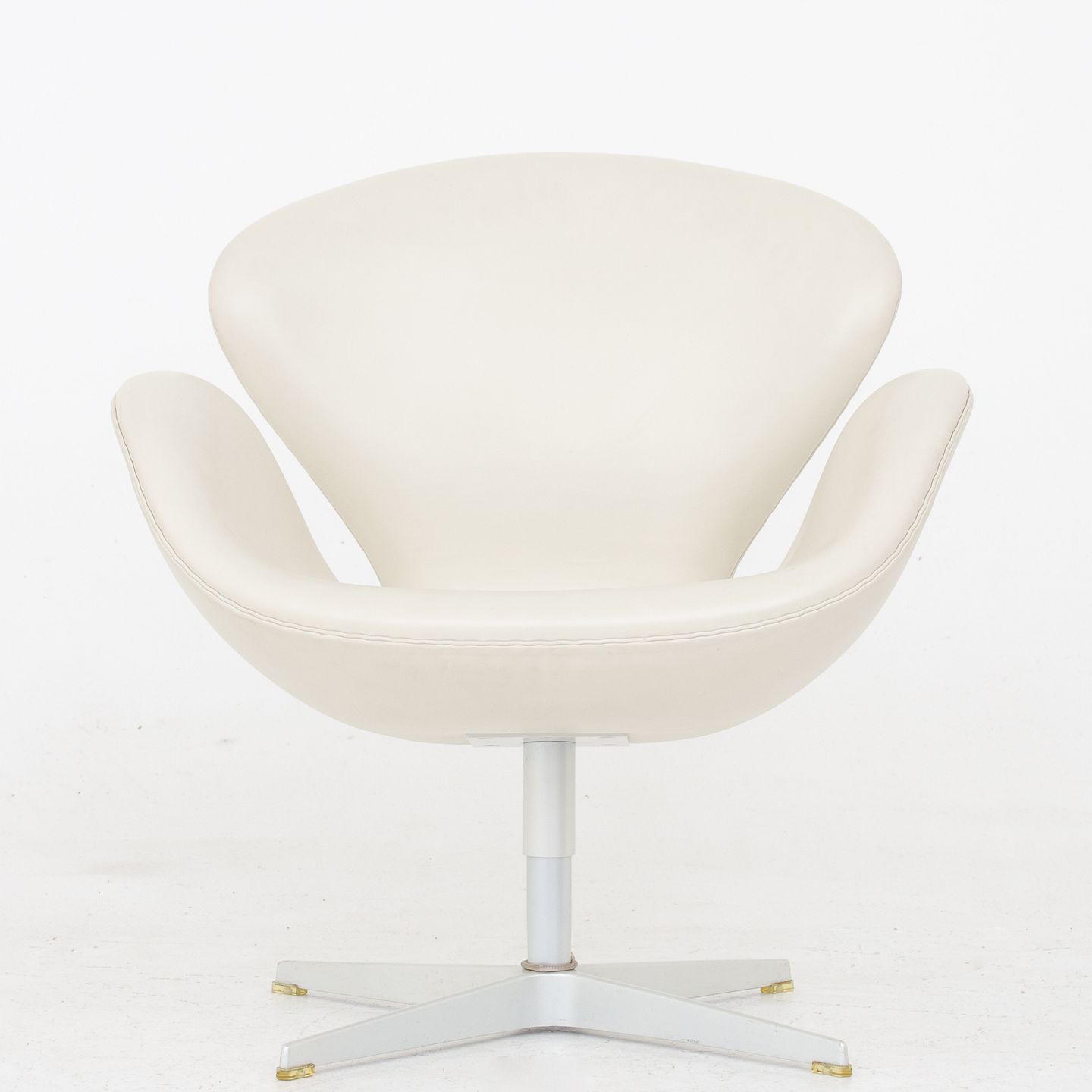 AJ 3320 - 'Svanen' lænestol (jubilæumsmodel) betrukket i hvidt læder med ny fod i perlehvidt metal.
