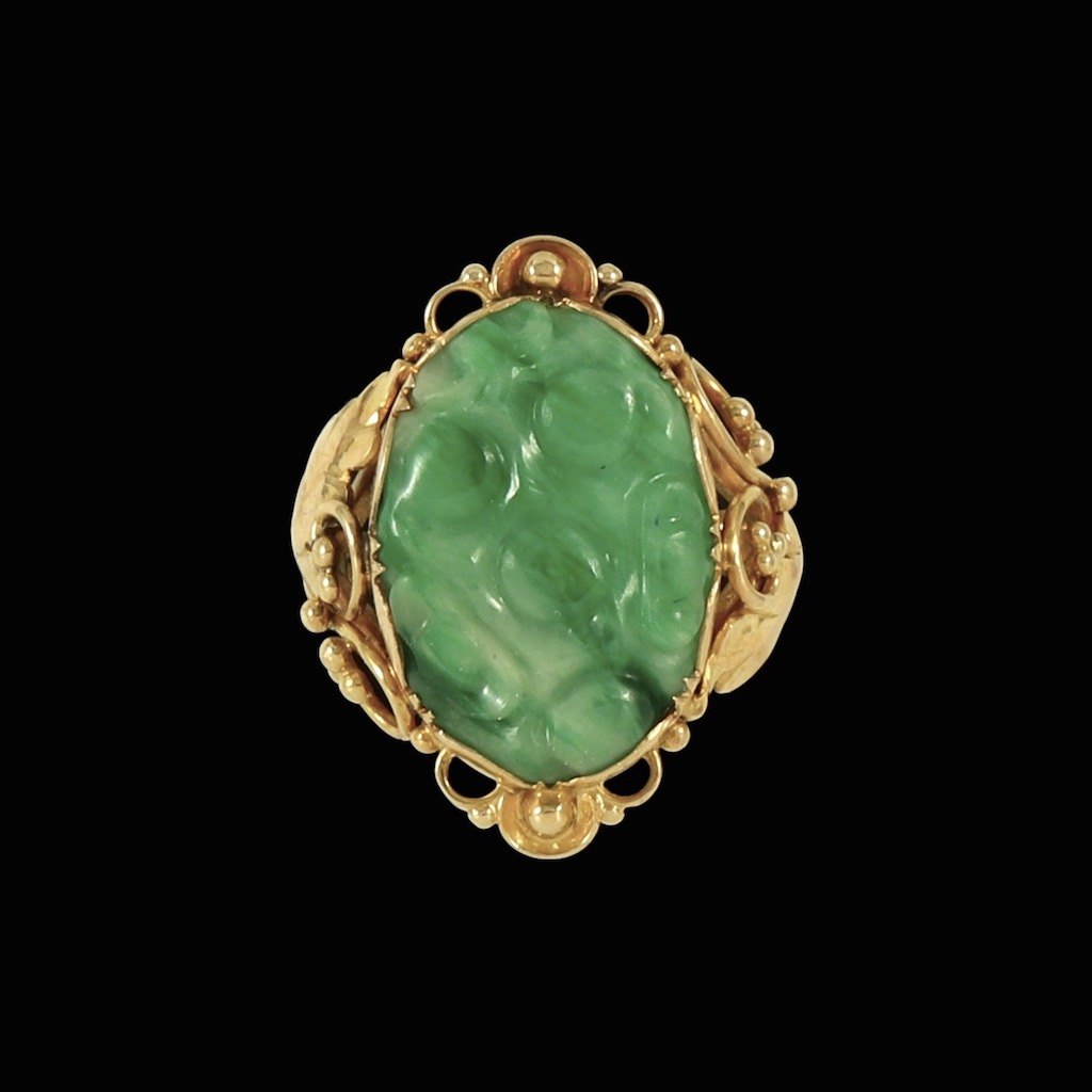 Thorvald Nielsen Meier - Copenhagen. Art Nouveau 14k Gold Ring with Jade.