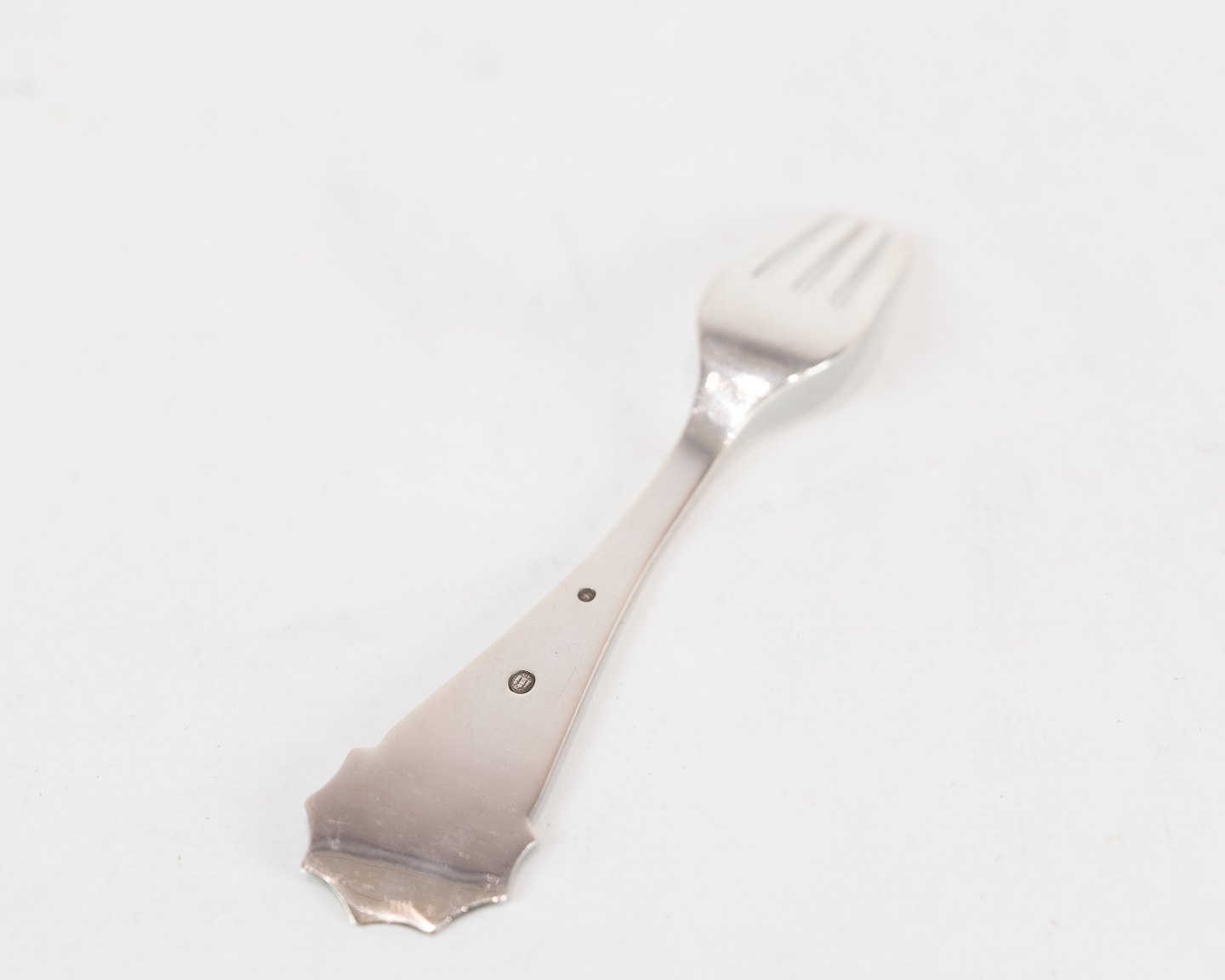 Barnegaffel med motif af H.C. Andersen Ole Lukøje i tretårnet sølv.