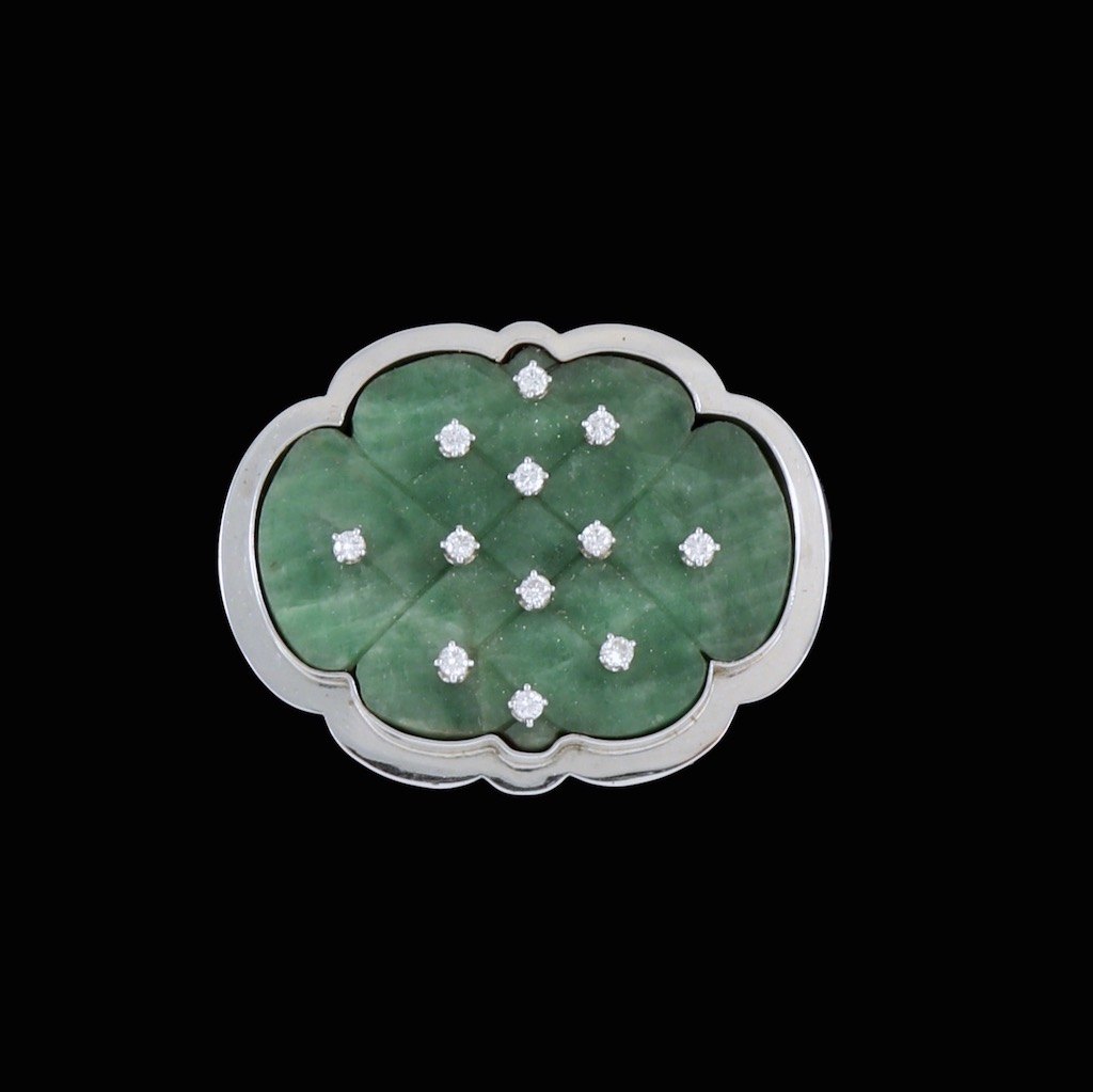 Broche i 14k hvidguld med jade og 12 diamanter. Total 0,24 ct.