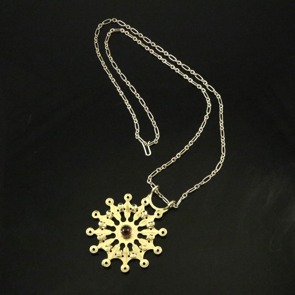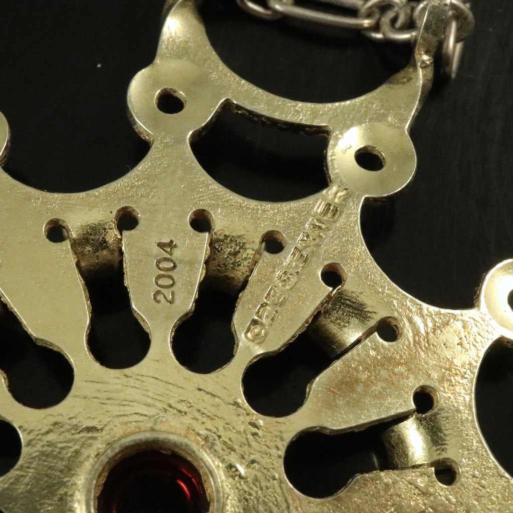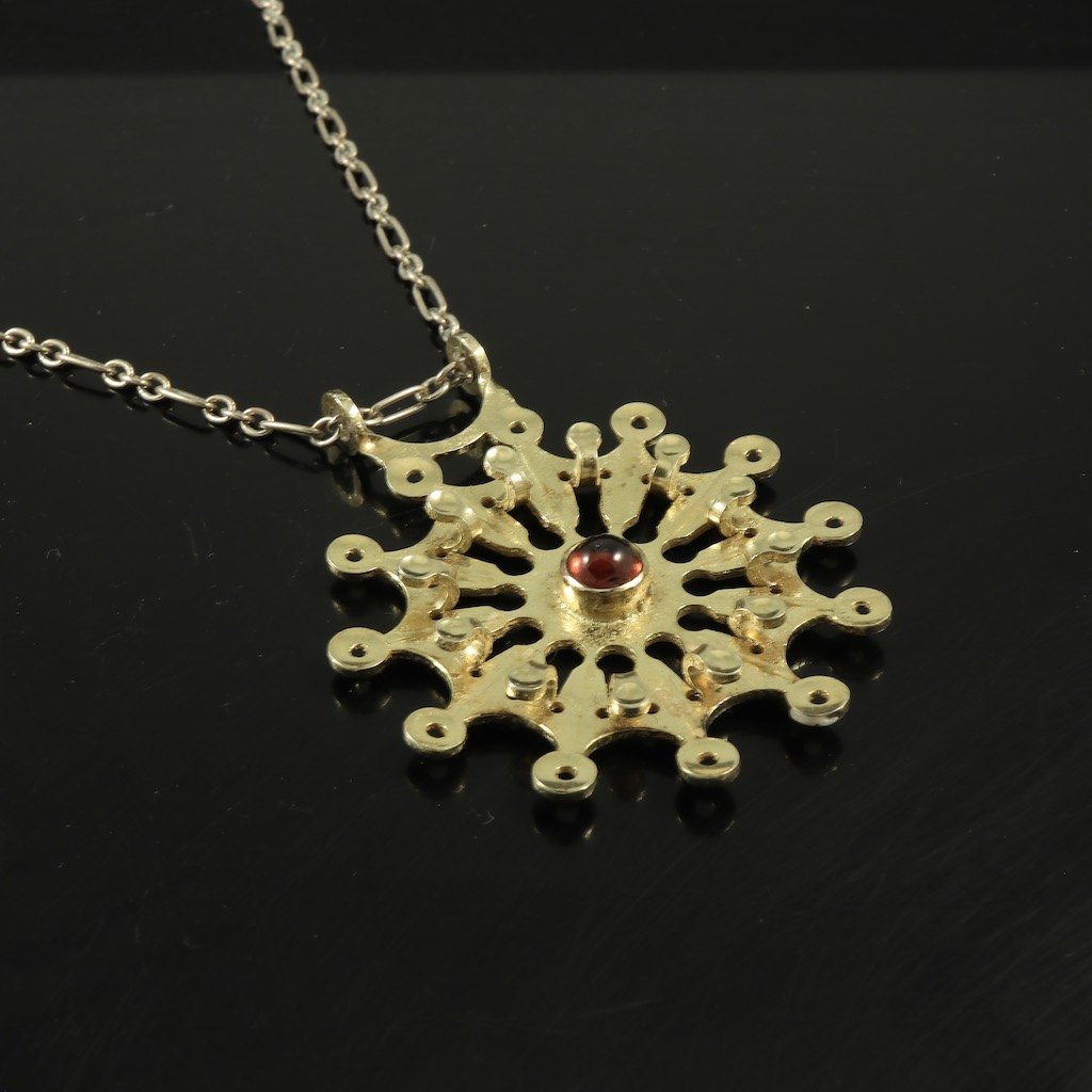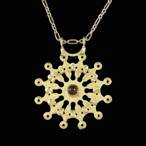 Bent Exner (1932-2006). Halssmykke i lueforgyldt sterling sølv med granat - 2004