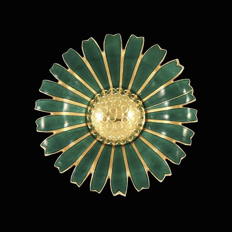 A. Michelsen. Marguerit / Daisy Broche/vedhæng i forgyldt Sterling Sølv med grøn emalje - 50mm