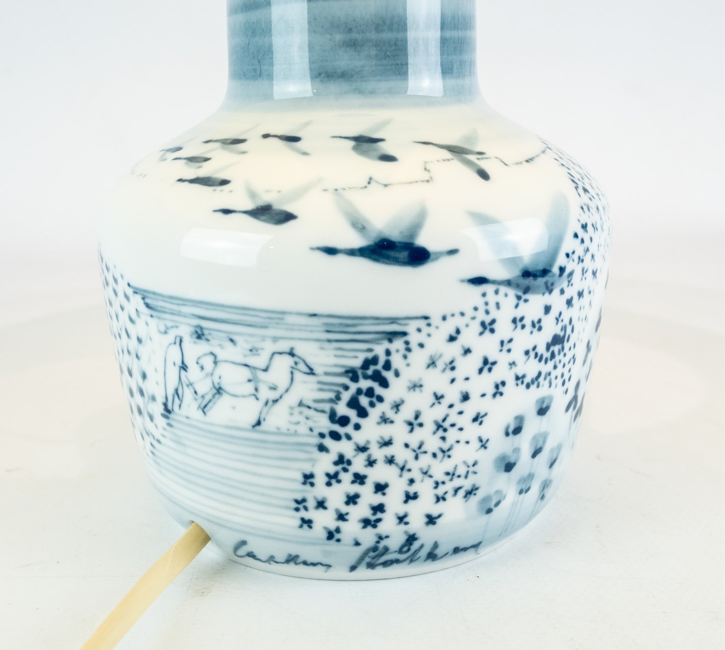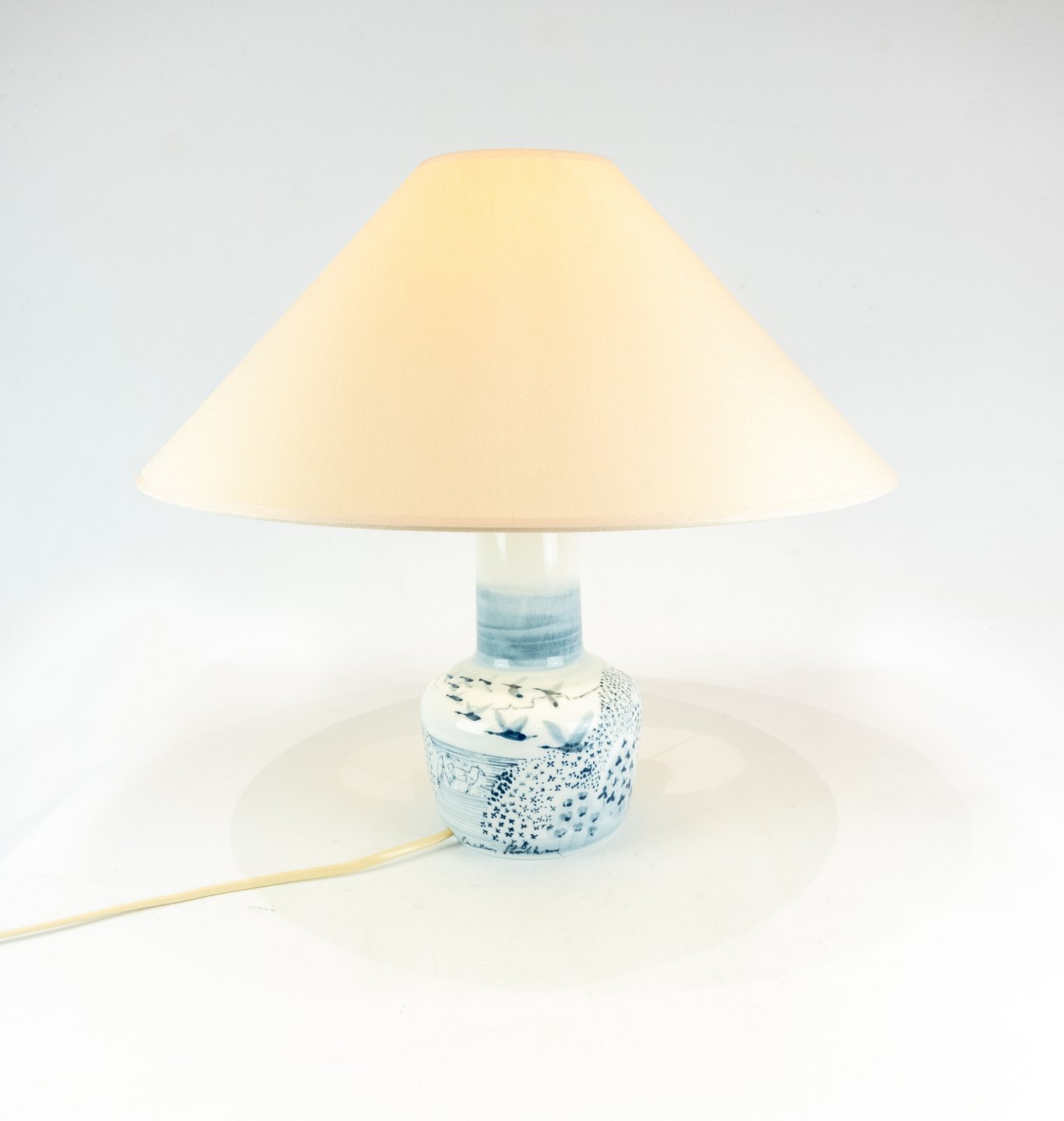 Table lamp in blue painted porcelain by Bing And Grøndahl.