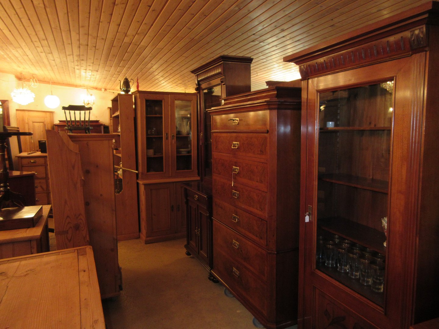 Stor salgsudstilling med restaurerede møbler håndpolerede mahognimøbler, afsyrede fyrretræsmøbler, malede træmøbler, kun originale gamle og antikke møbler.