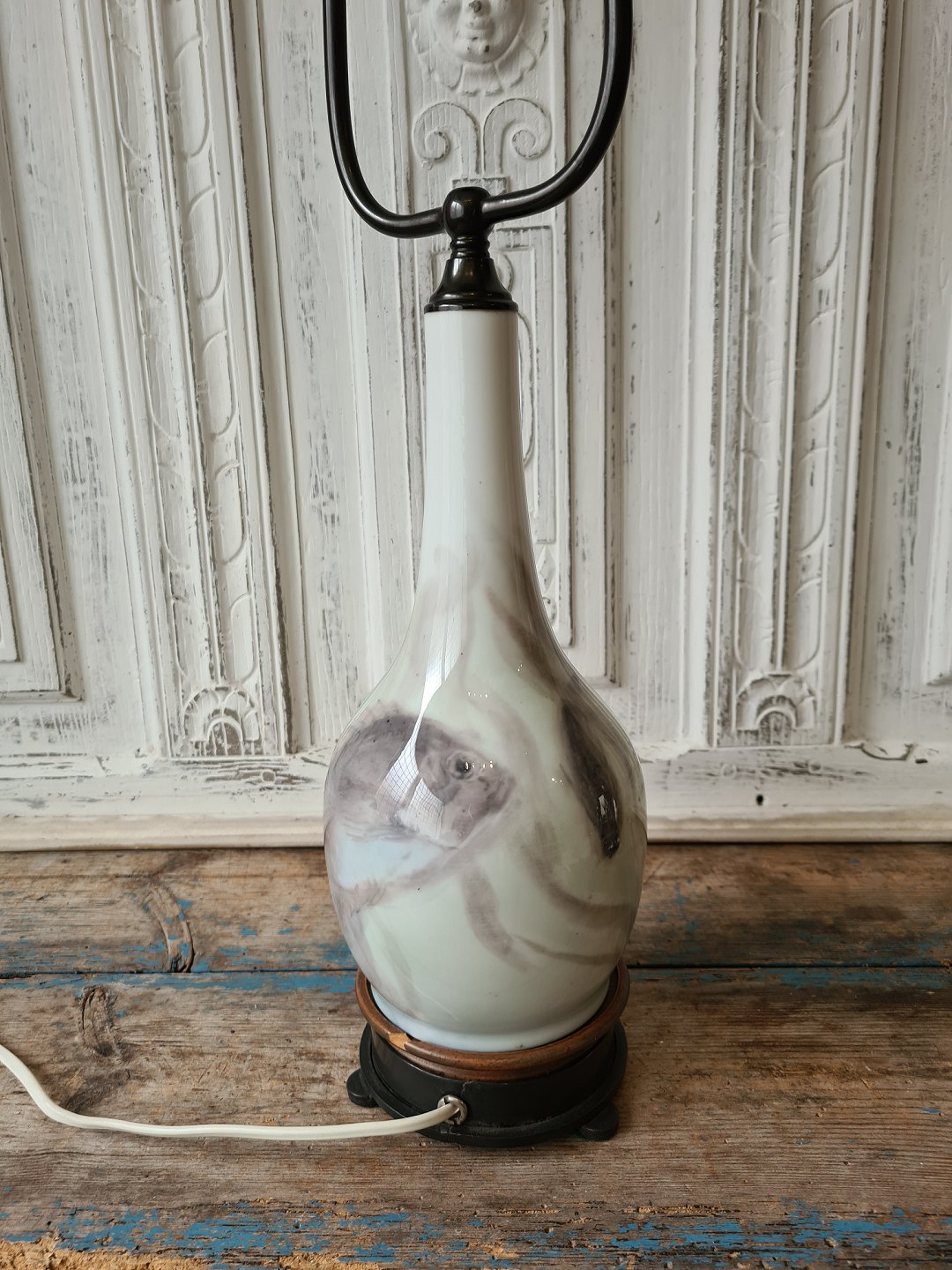 Svend Ring for Royal Copenhagen unika bordlampe dekoreret med fisk fra 1922.