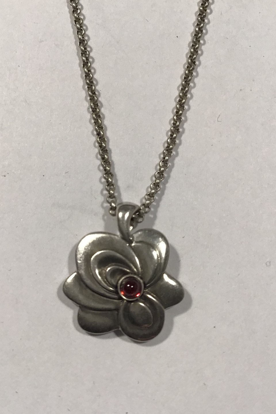 Georg Jensen Sterling Silver Necklace with Pendant No 263 with garnet