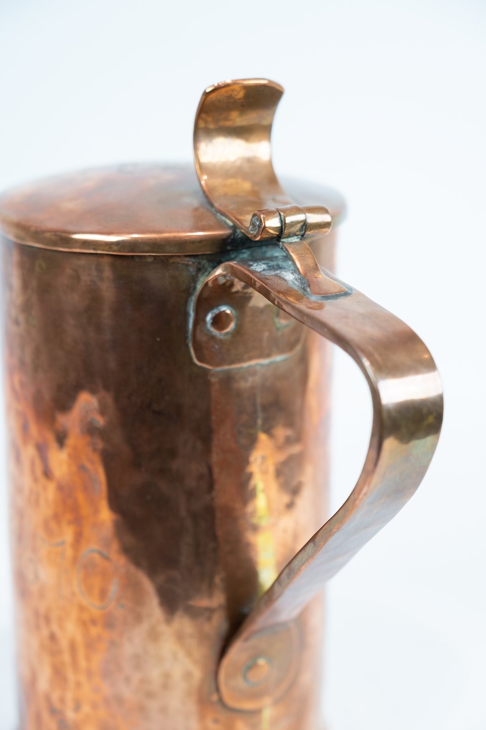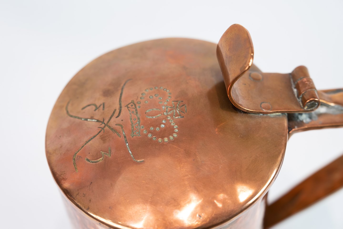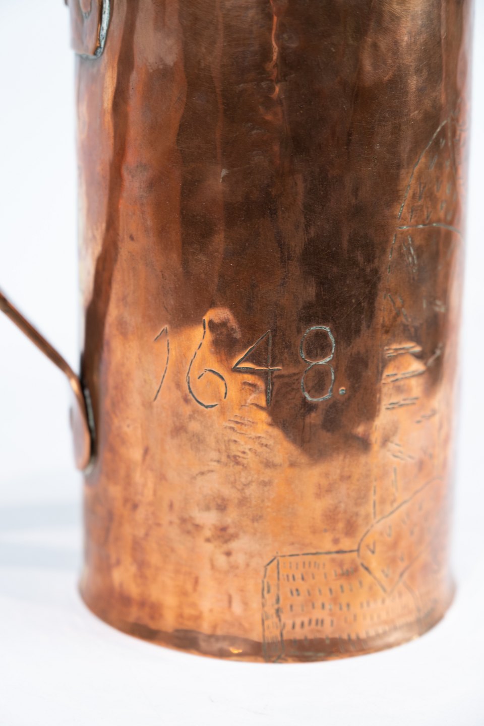 Copper jug with lid and engravings from Denmark around the 1820s.