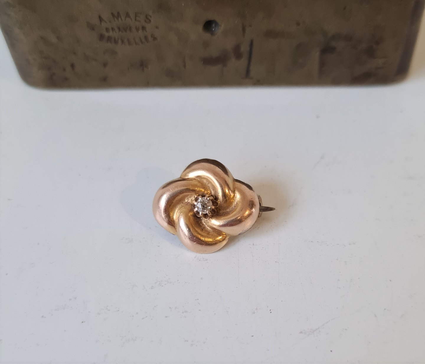 Beautiful old 14 kt gold brooch with old mine cut diamond.