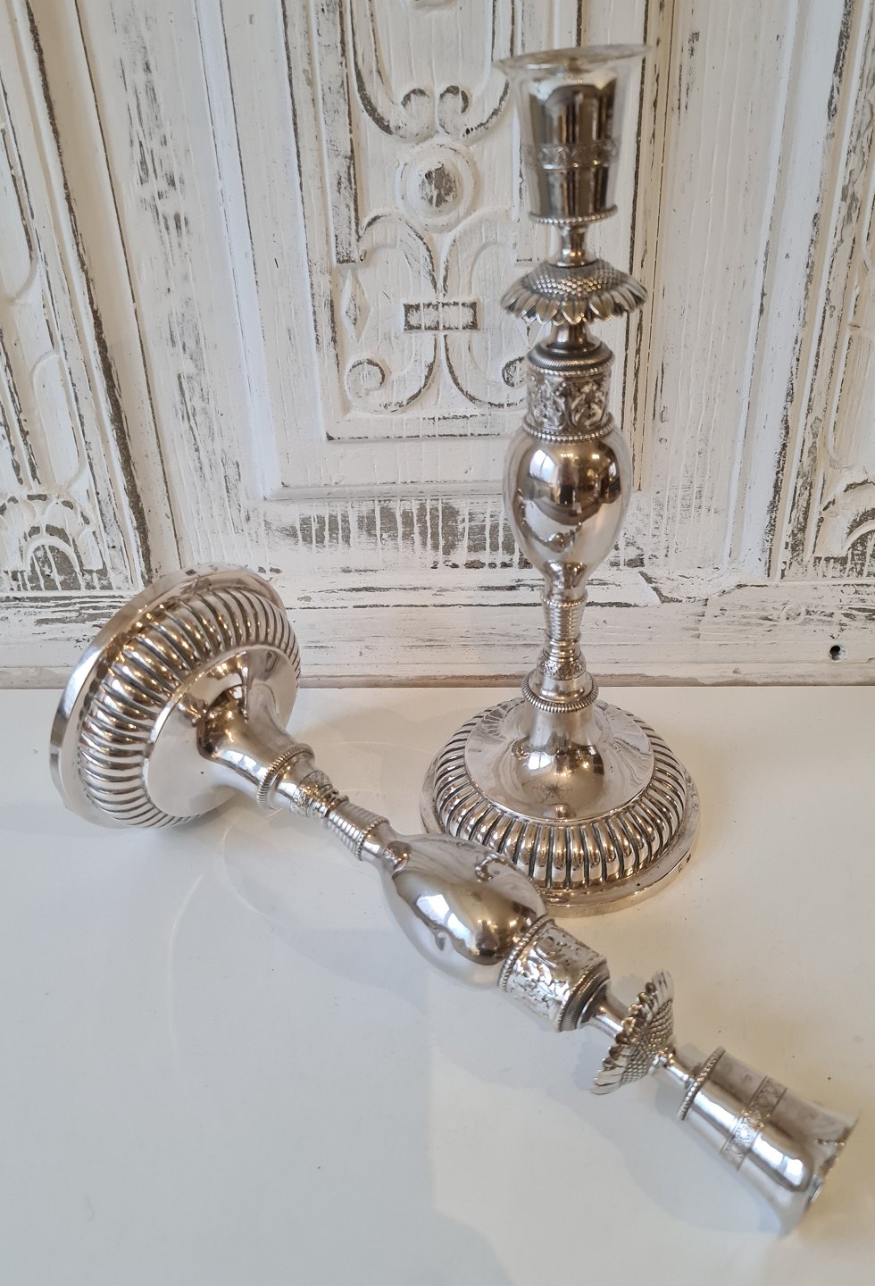 Pair of very beautiful Empire candlesticks in silver.