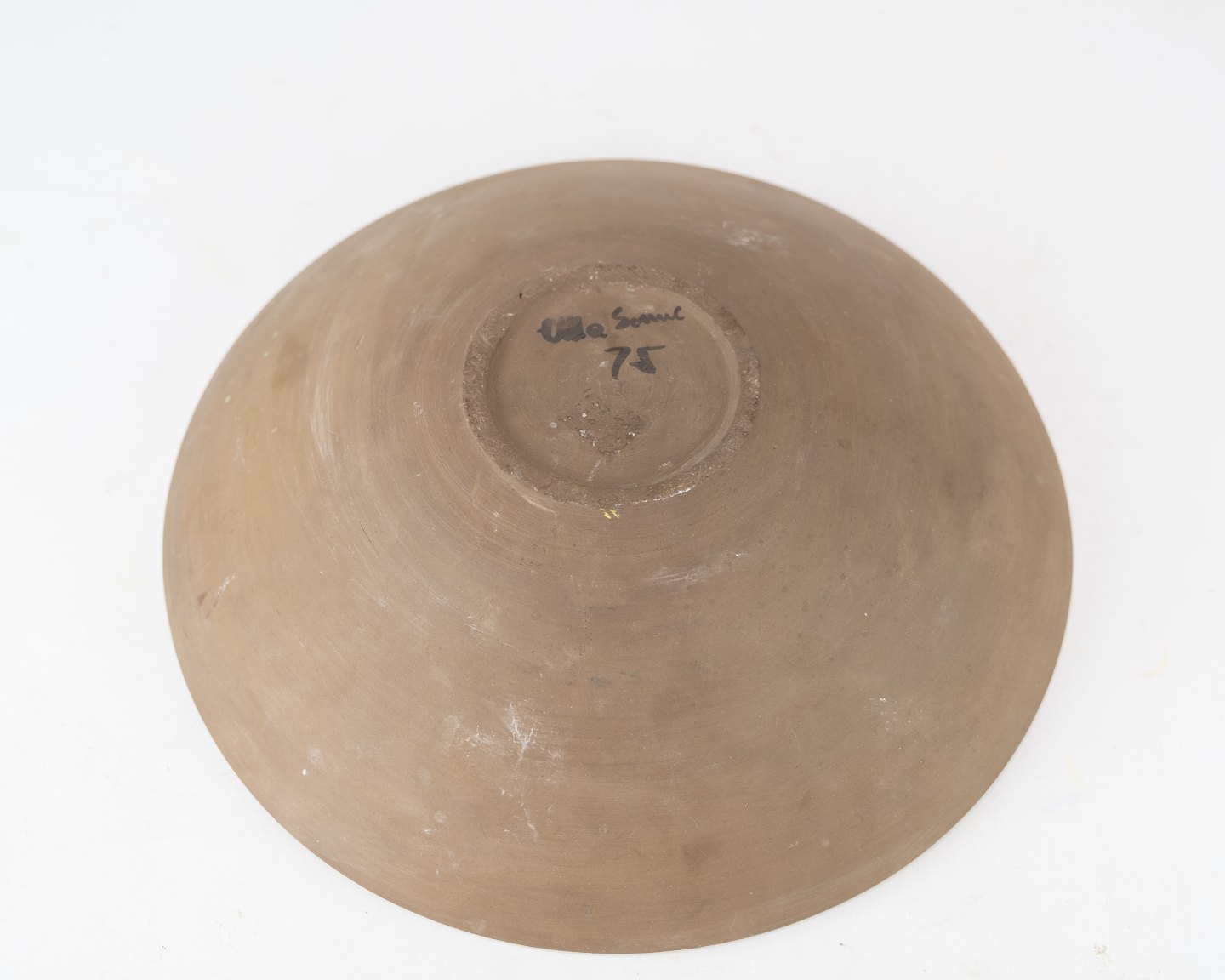 Ceramic bowl in dark colours by Ulla Sonne from 1975.