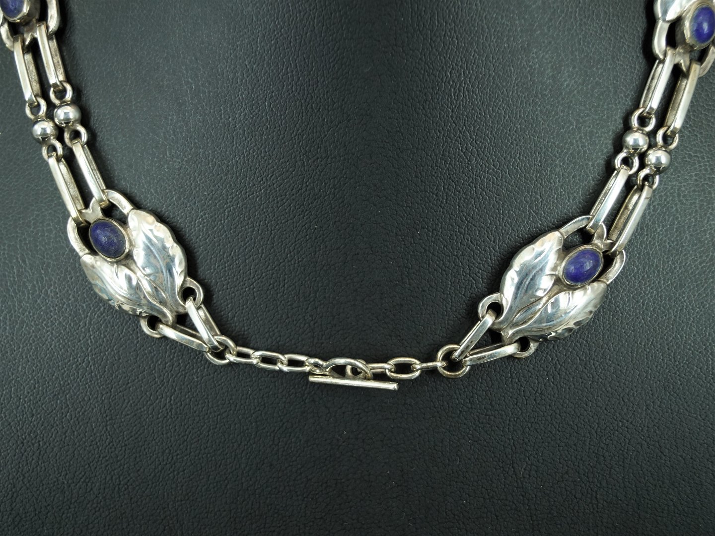 Georg Jensen; Halscollier af sølv #1, prydet med lapis lazuli.