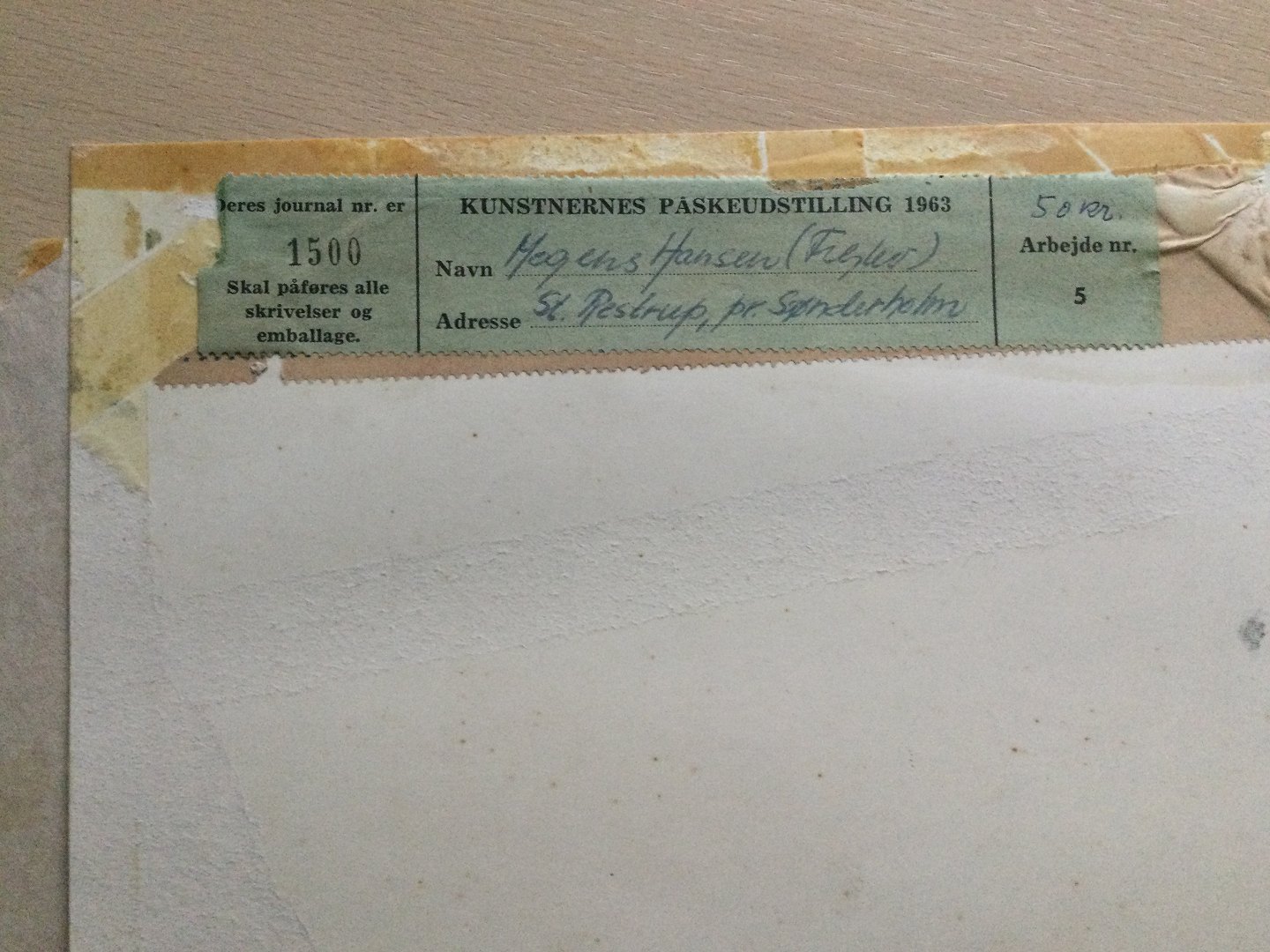 Bagpå mærke fra Kunstnernes Påskeudstilling 1963 no. 5.