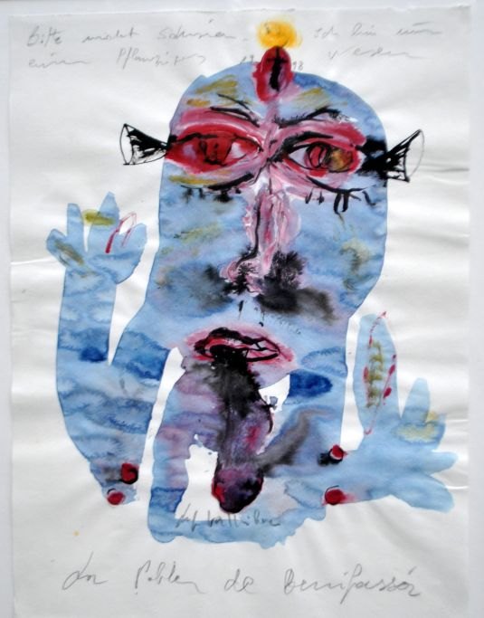 Vallribera, Josep (1937 - ) Spanien: Bitte nicht Schissen... Akvarel på papir. Signeret. 40 x 30 cm.