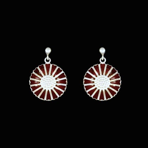Bernhard Hertz. Silver Daisy Earsticks with burgundy enamel. 18mm