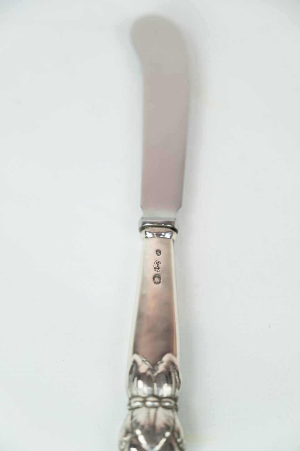 Smørkniv af tretårnet sølv.