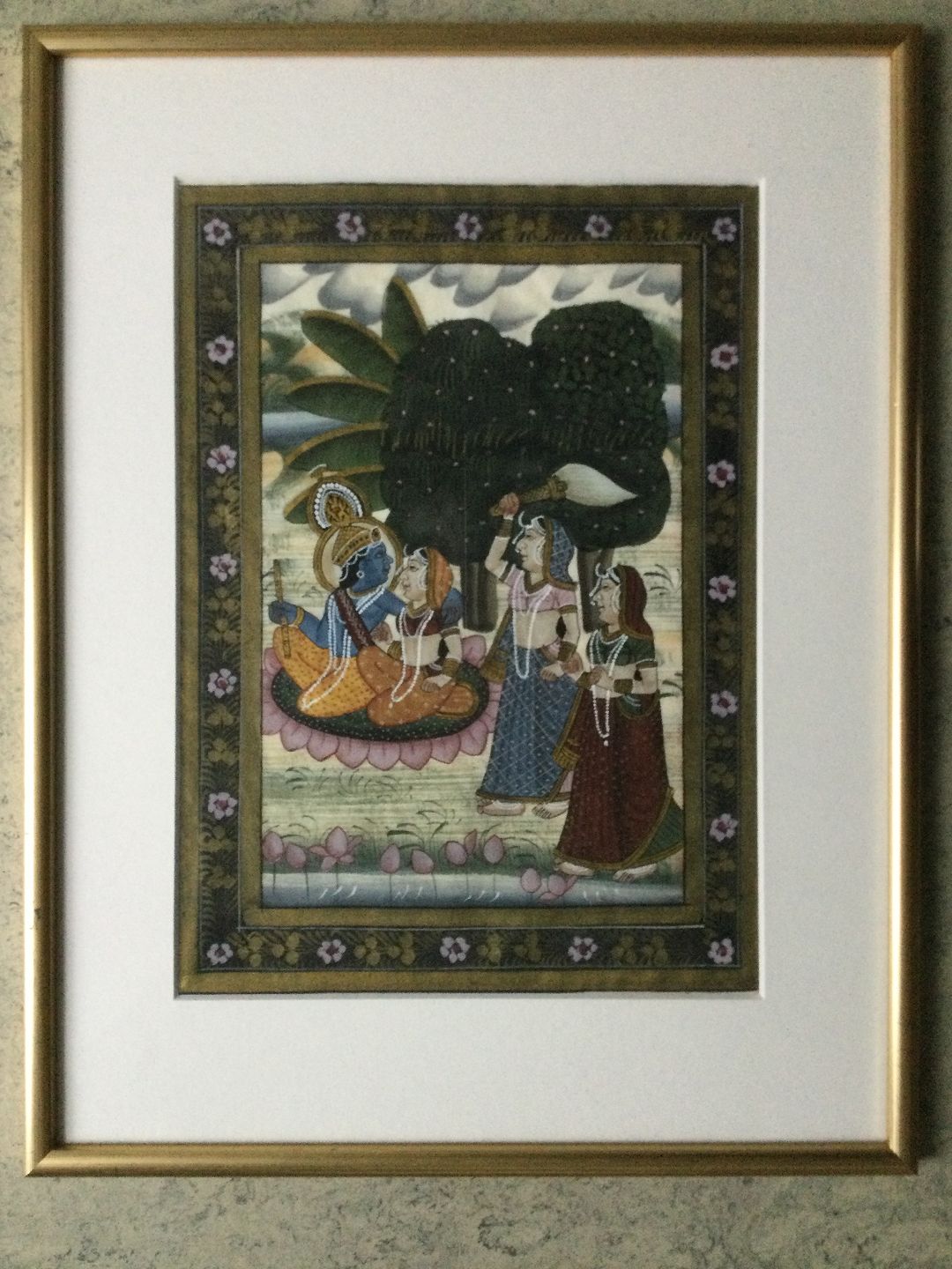 Indisk billede - bemalet silke.