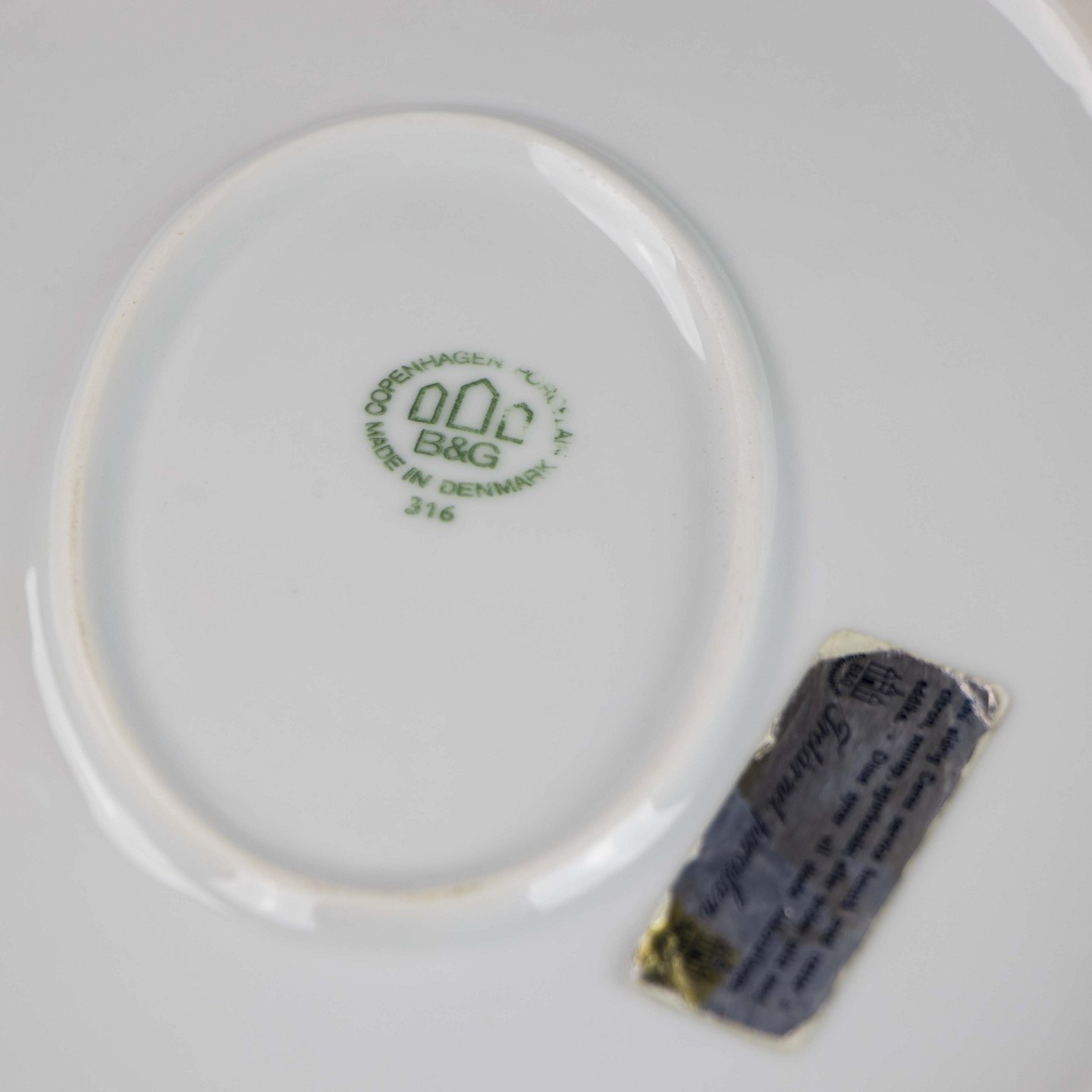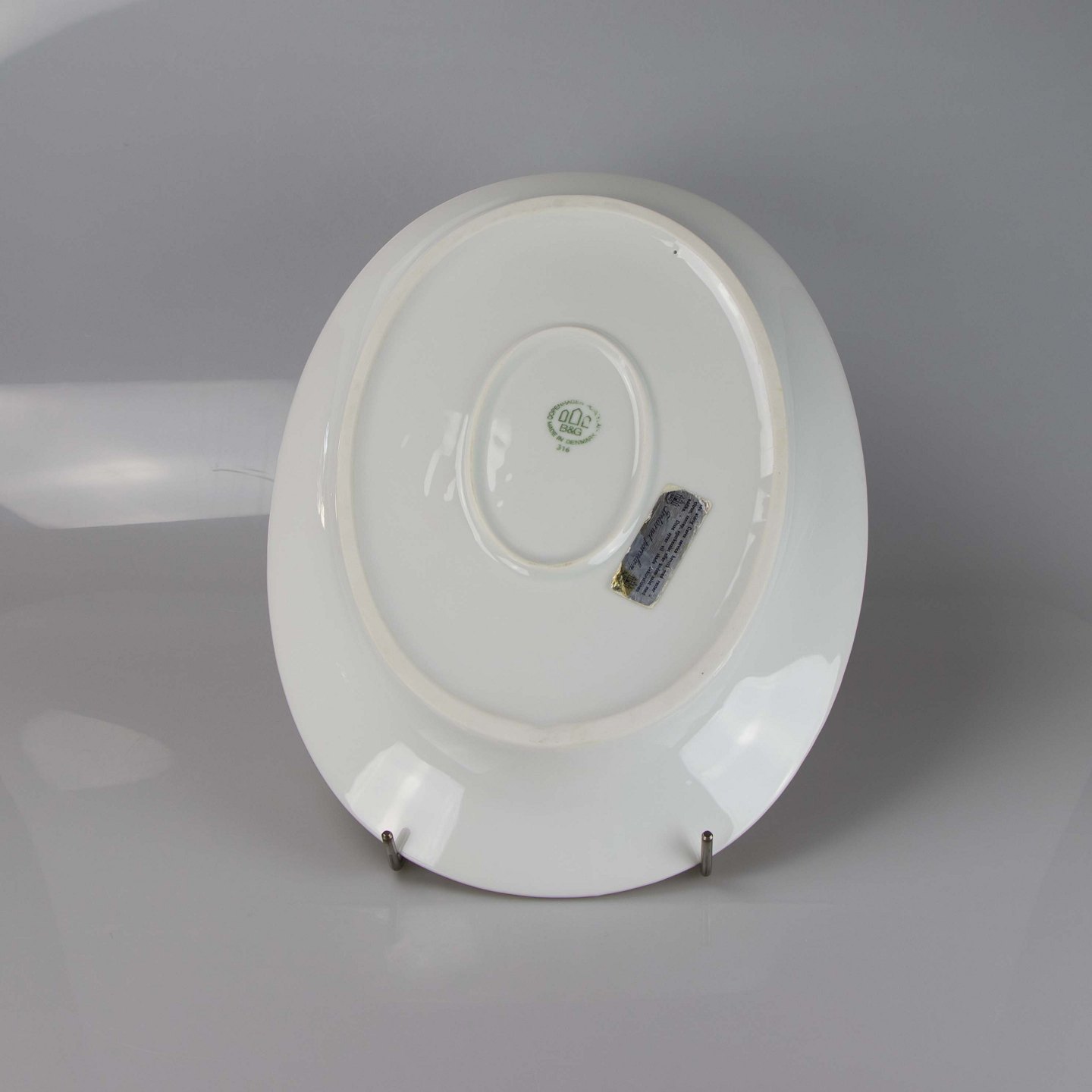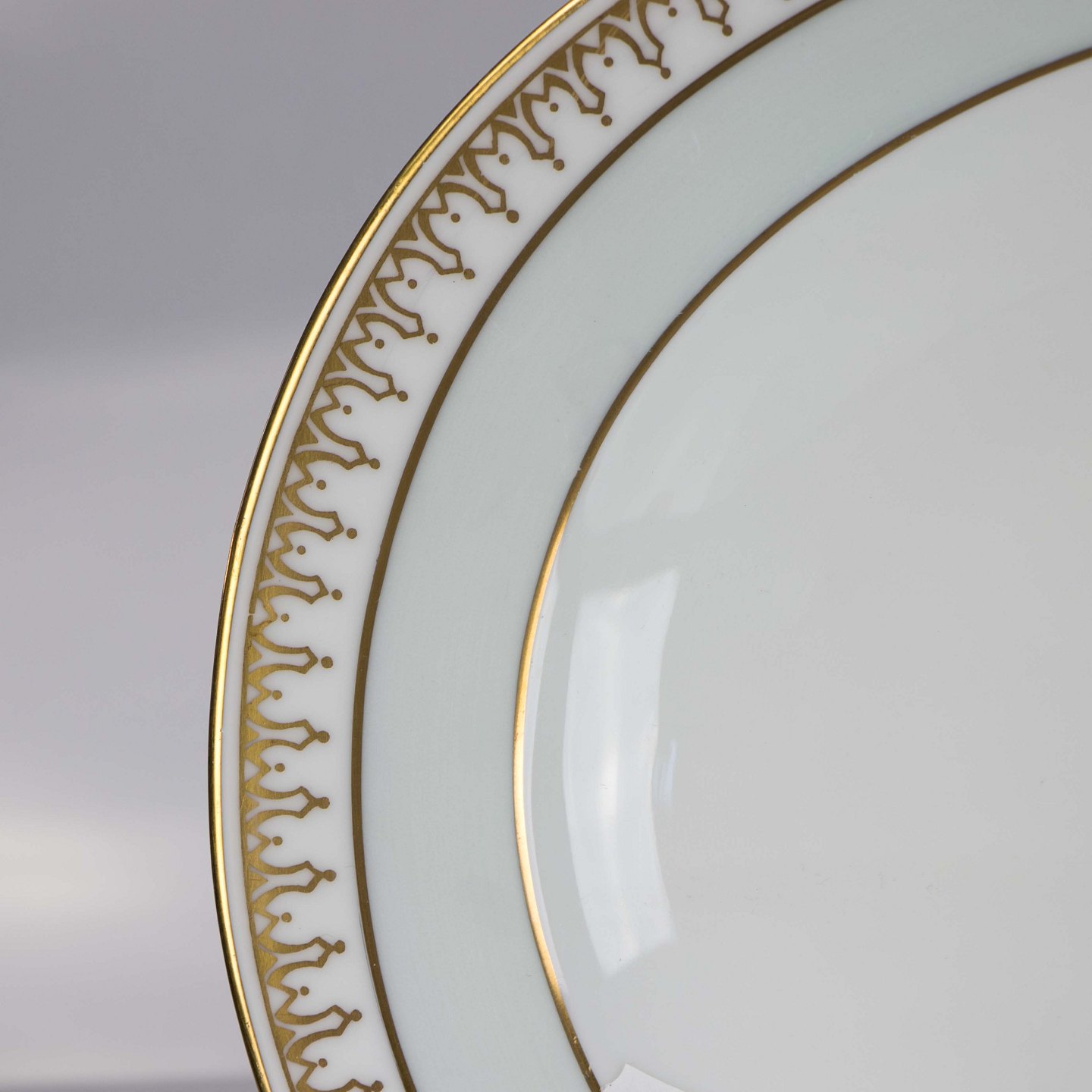 Fad i hvidt porcelæn med lysegrøn kant og gylden dekoration