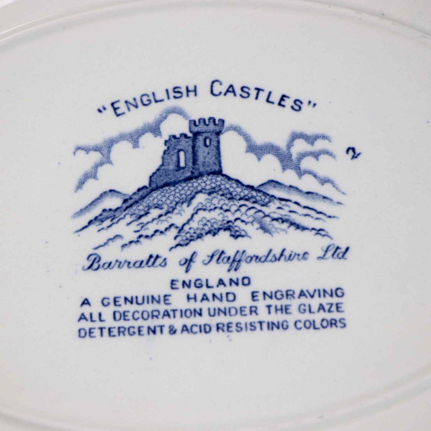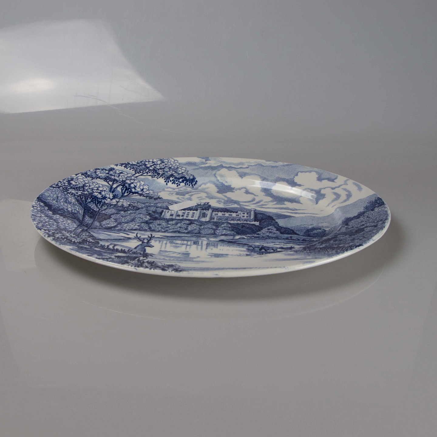 Fad i lys fajance med blådekoreret slotsmotiv.
