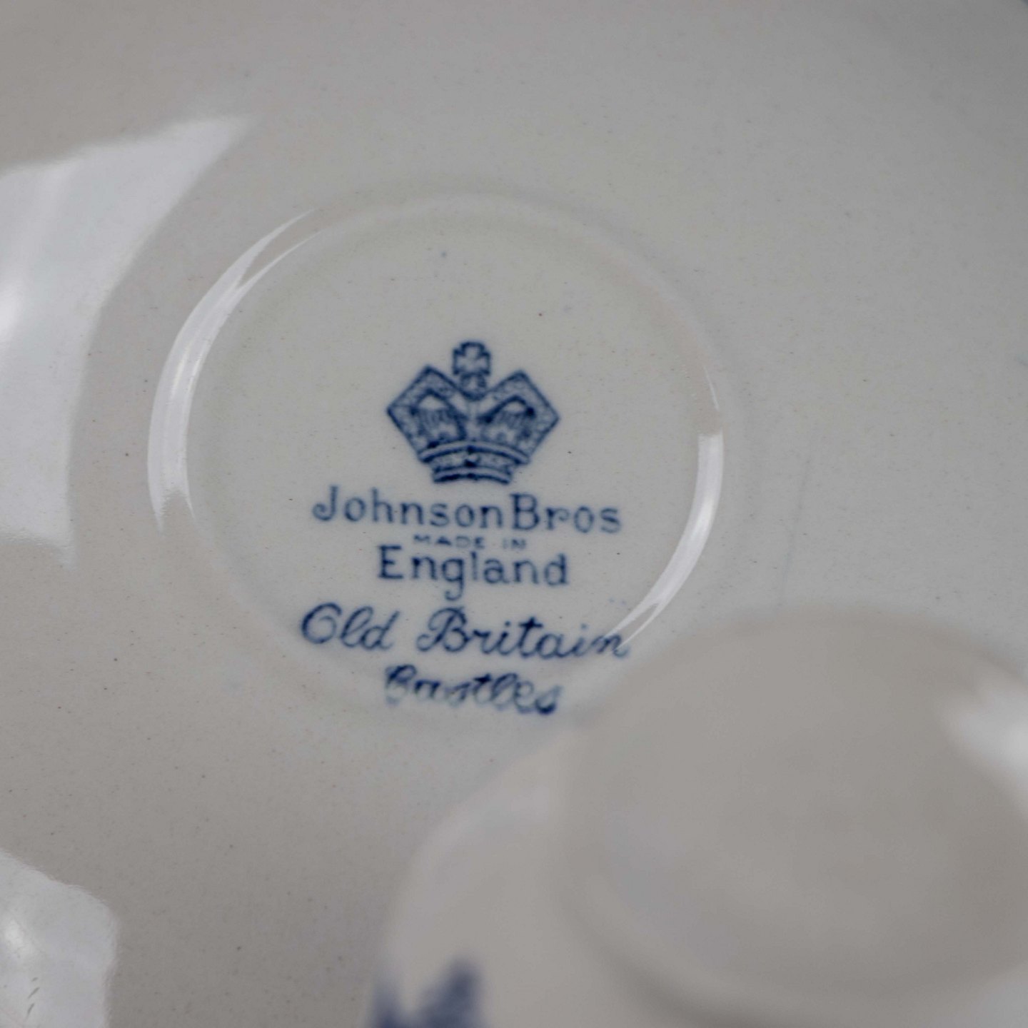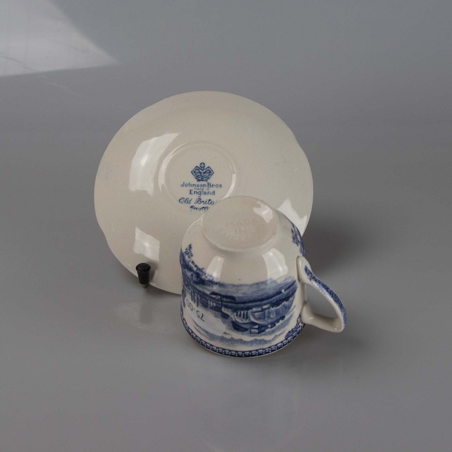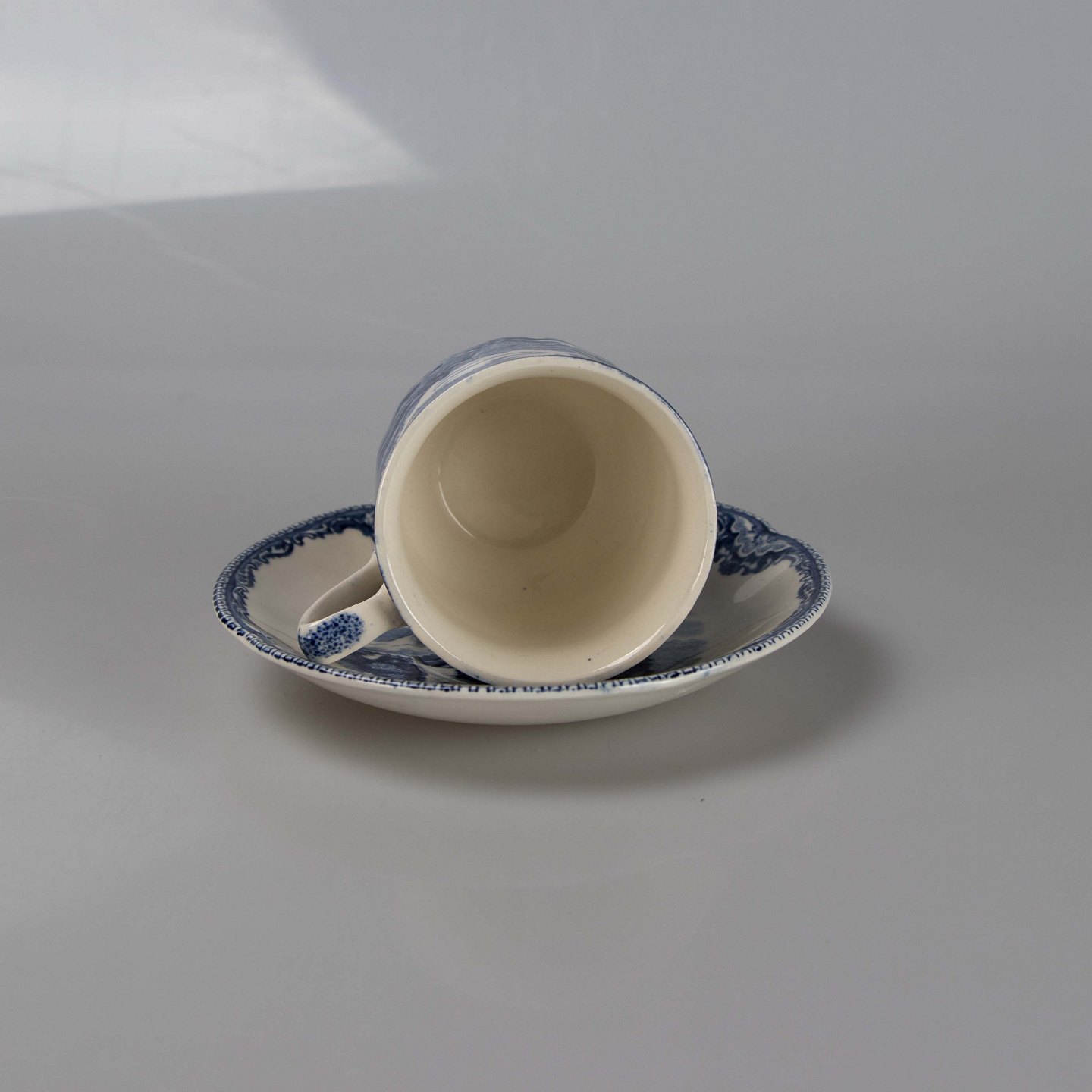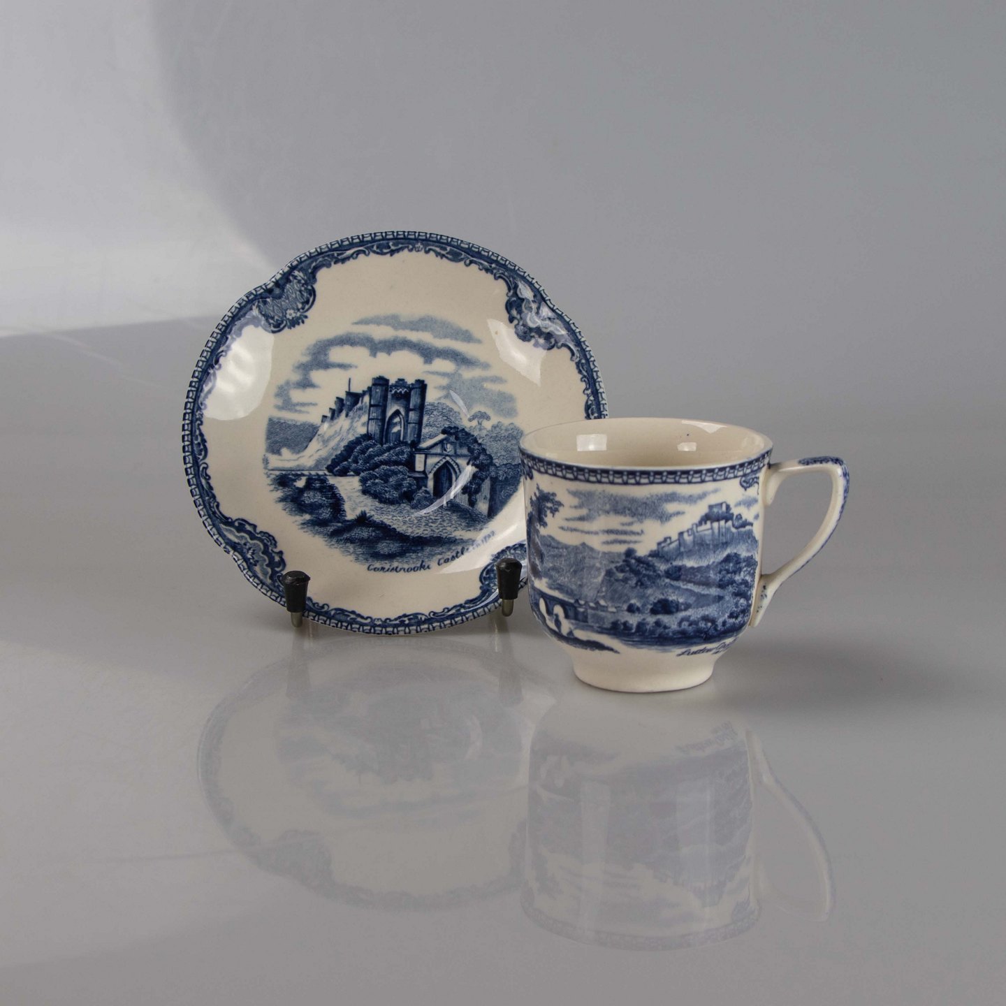 Moccakop med underkop i engelsk fajance fra stellet Old Britain Castles blue