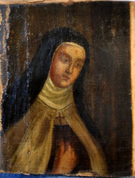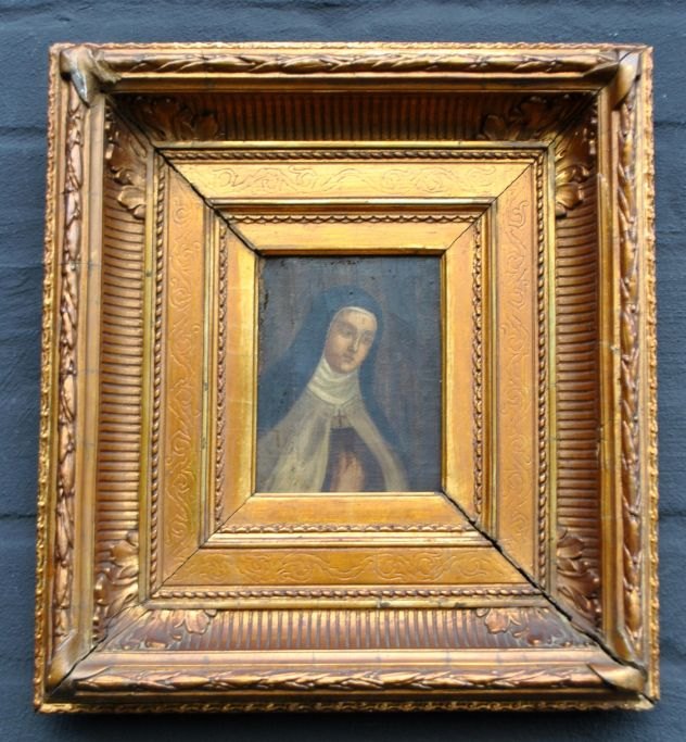 Ubekendt kunstner, (19. årh.): En nonne. Usigneret. Olie på lærred. 12 x 9 cm.