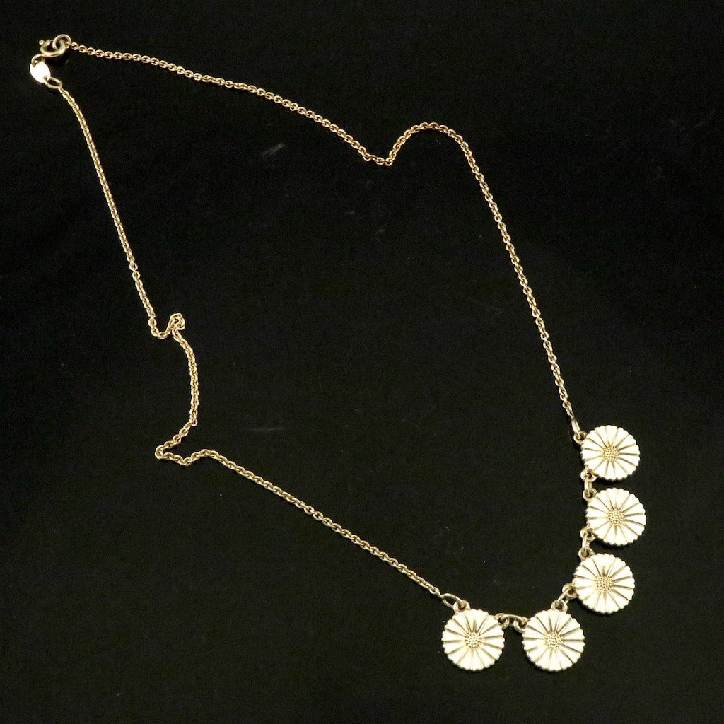 Bernhard Hertz. Marguerit / Daisy halskæde i forgyldt sterlingsølv med emalje.