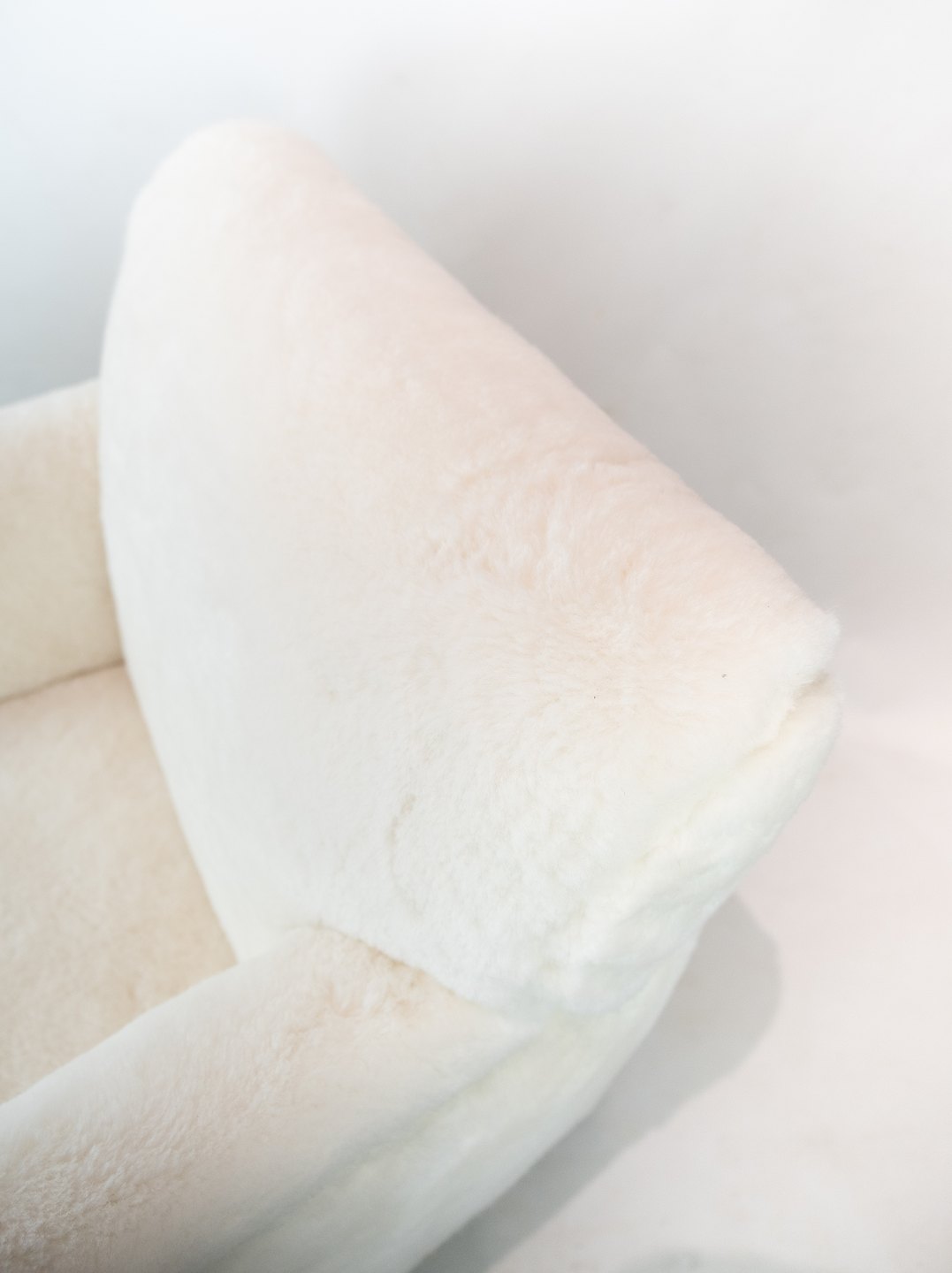 Denne charmerende hvilestol vil tilføre en sofistikeret elegance til ethvert rum. Med sit nypolstrede sæde af blødt fåreuld og smukt polerede træben, tilbyder stolen både komfort og stil. Den er en tidløs klassiker, der perfekt fletter traditionelt design med moderne bekvemmeligheder.