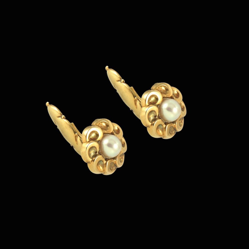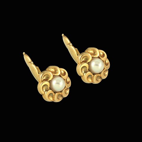 Evald Nielsen 1879 - 1958. Manchetknapper i 14k guld med Perler.