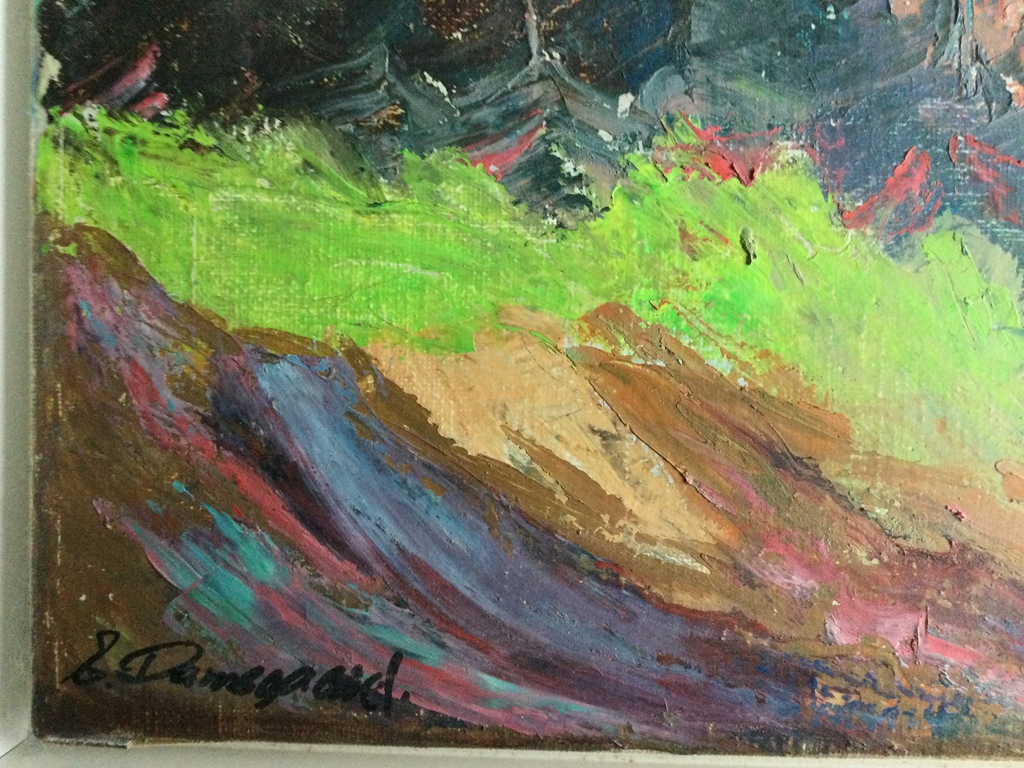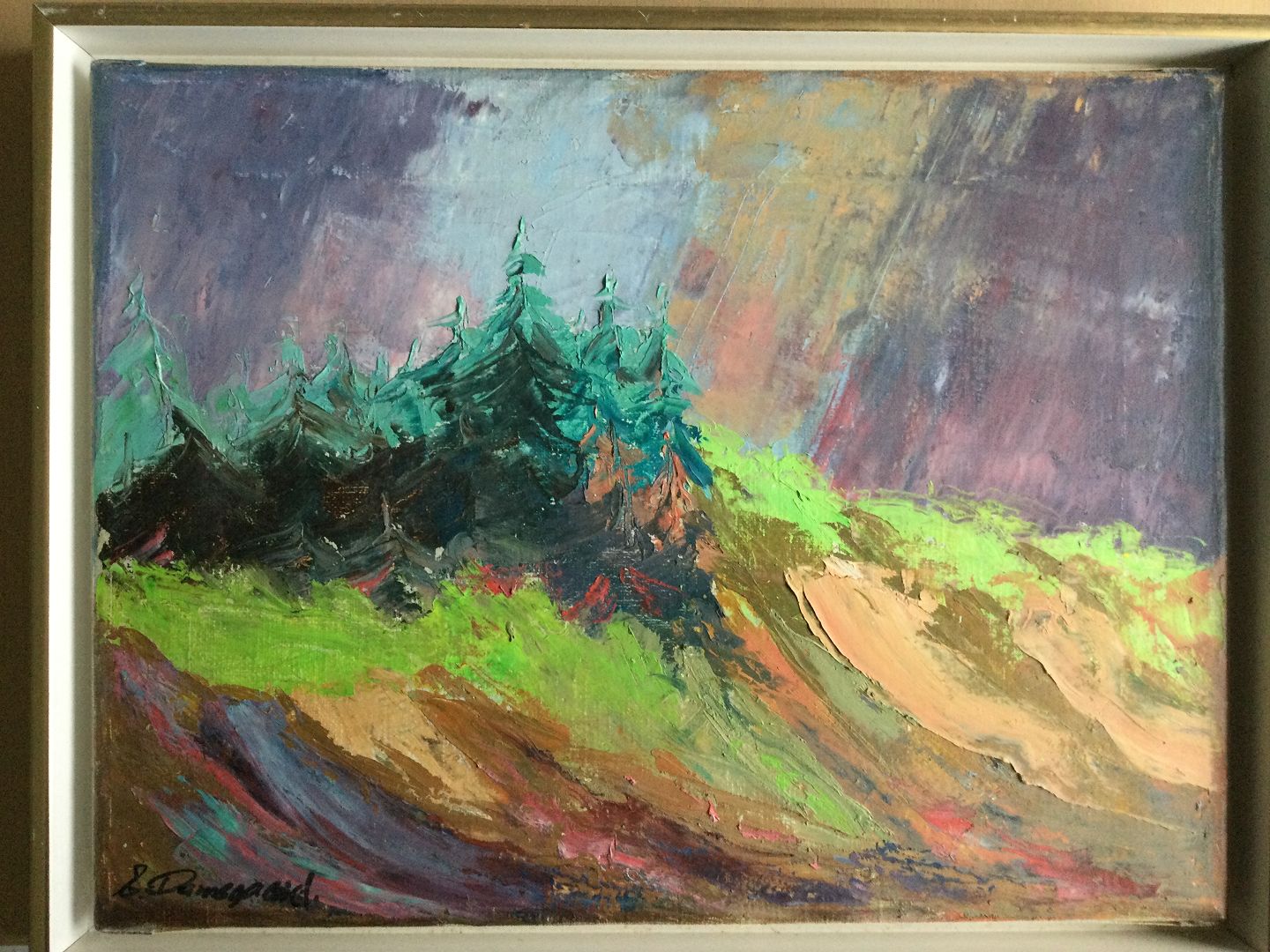Maleri af Ejvind Damsgaard - Skrænt med graner.