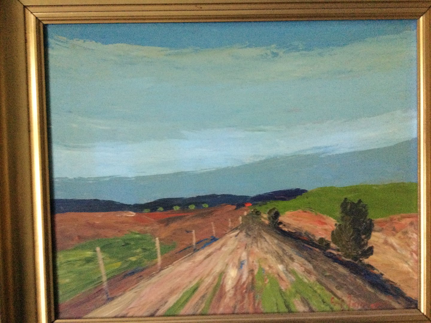 Maleri af Fritz Jacobsen "Parti med vej gennem landskab"