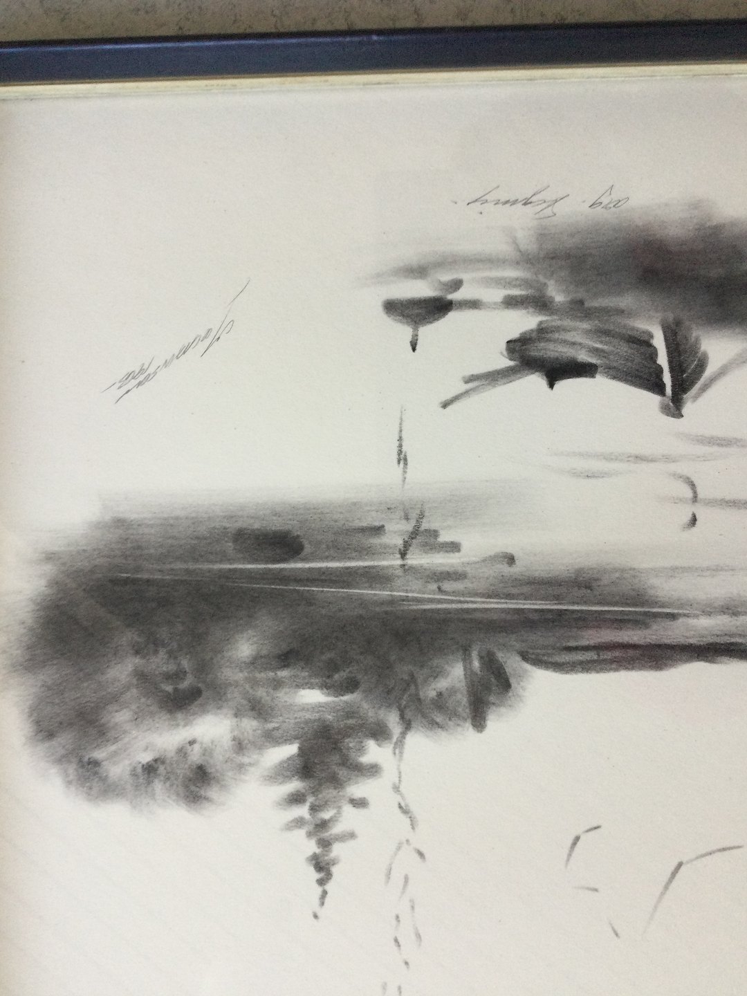 Tegning af Elsius Johansen - Kystparti med både 1963.
