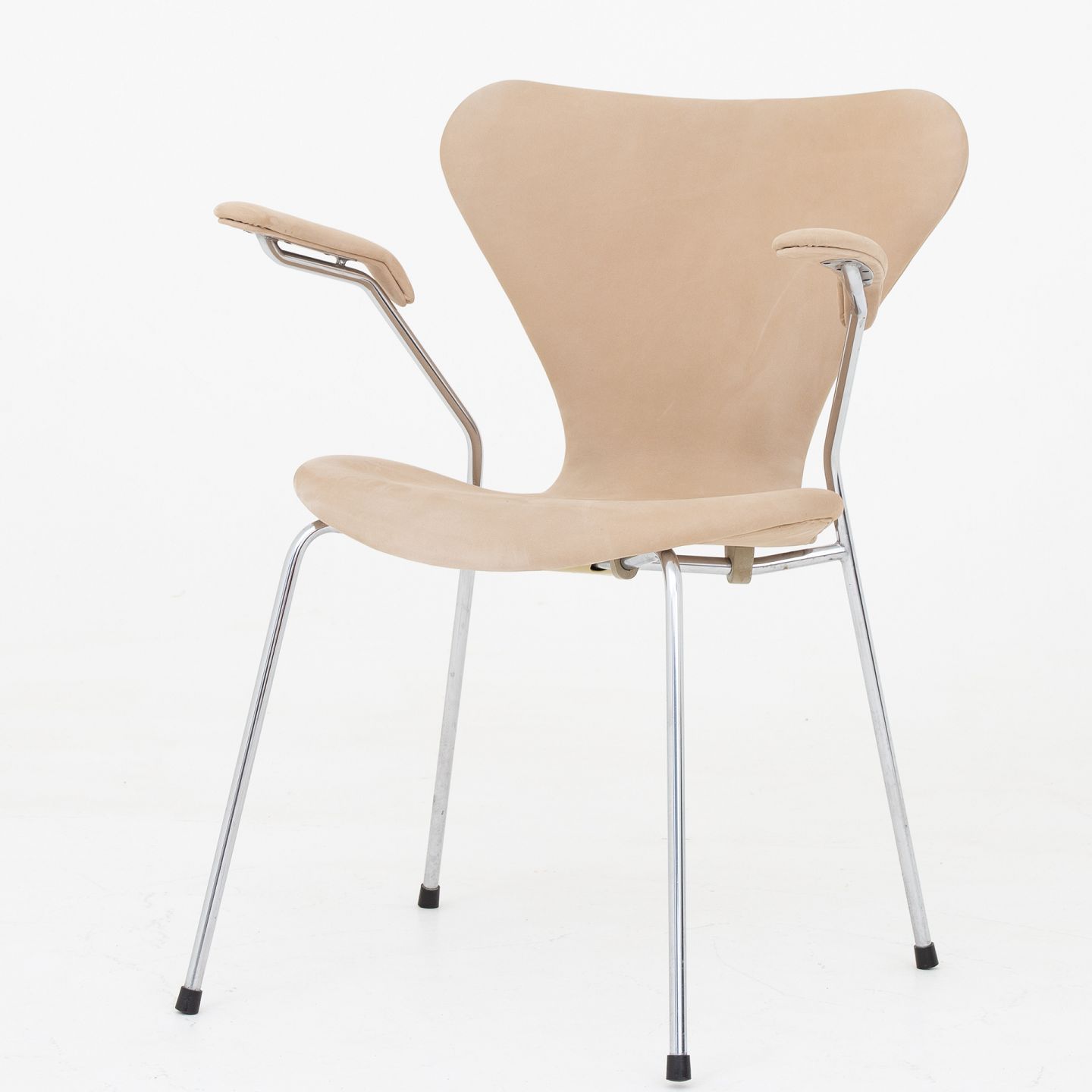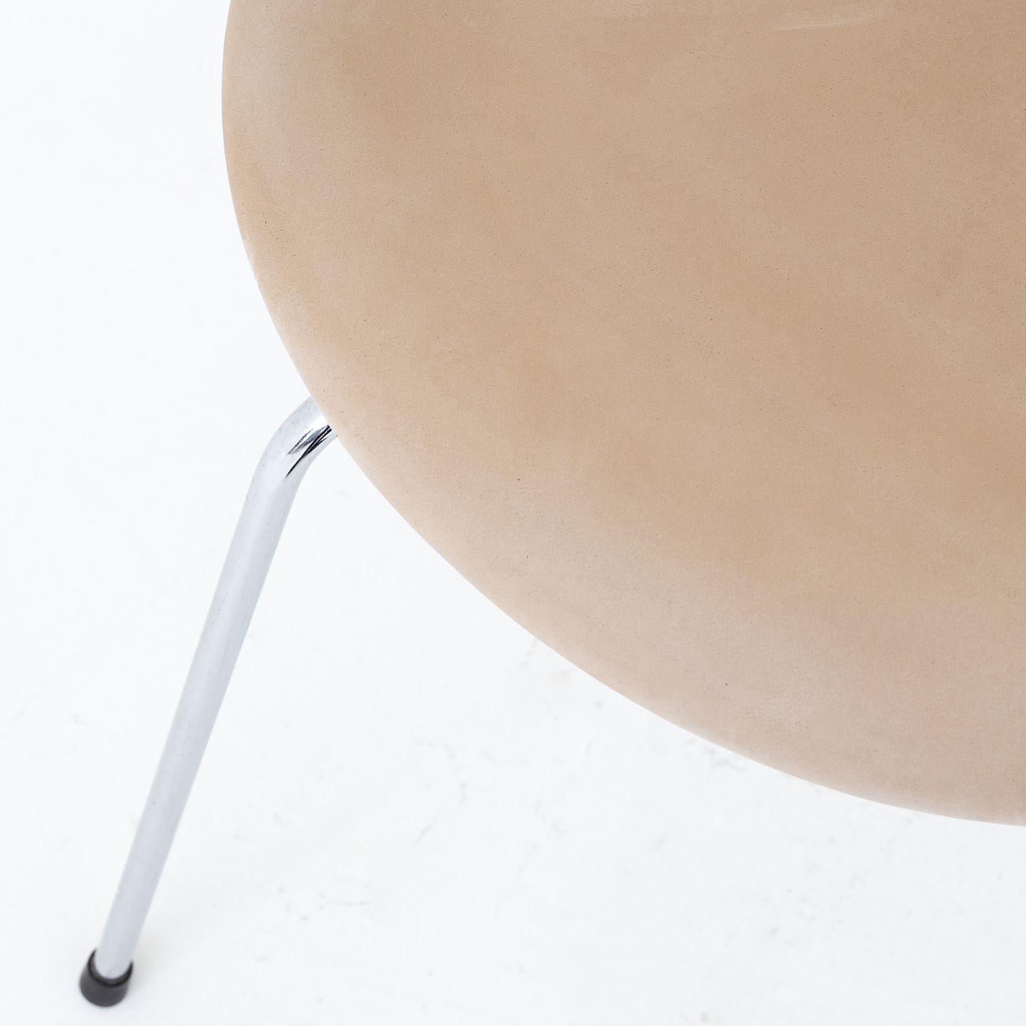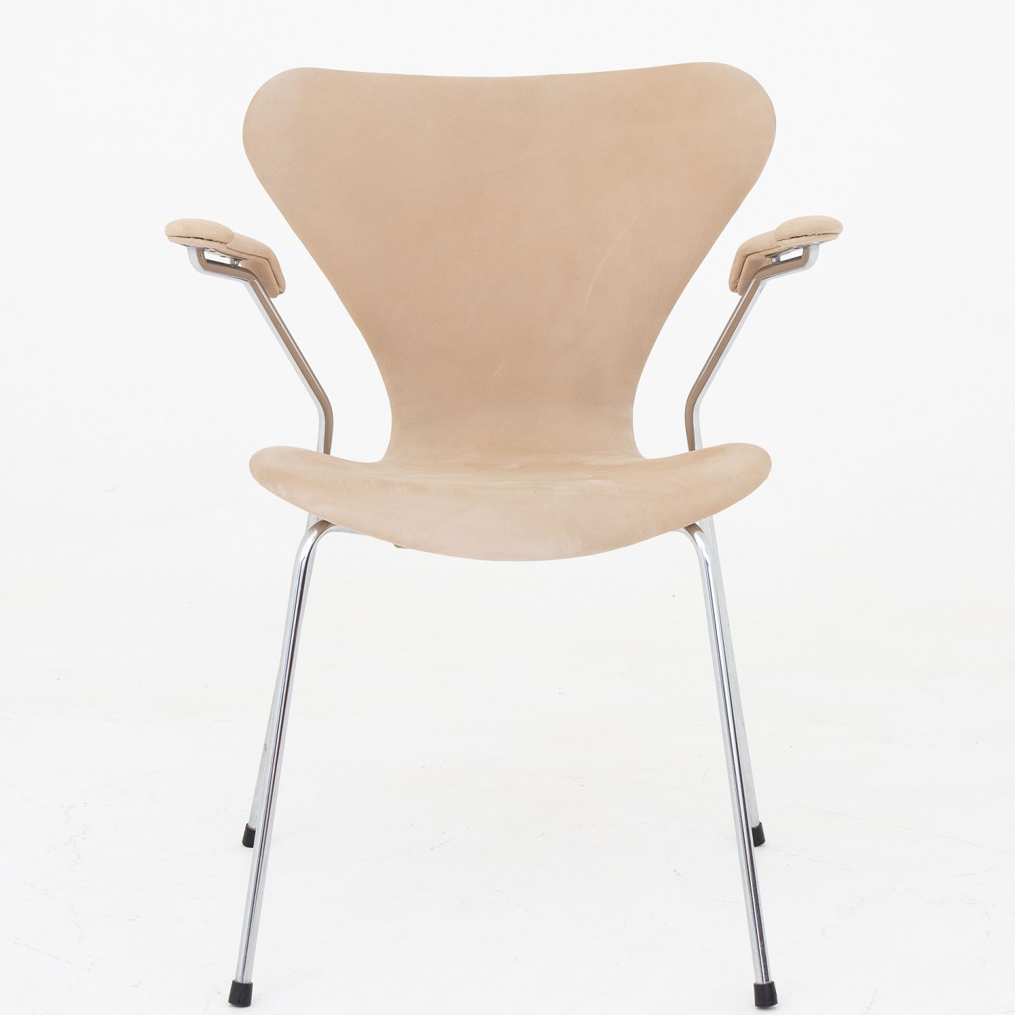 AJ 3207 - Reupholstered armchair in Royal Nubuck leather (Ecru) on steel frame. KLASSIK offers upholstery of the chair with fabric or leather of your choice.