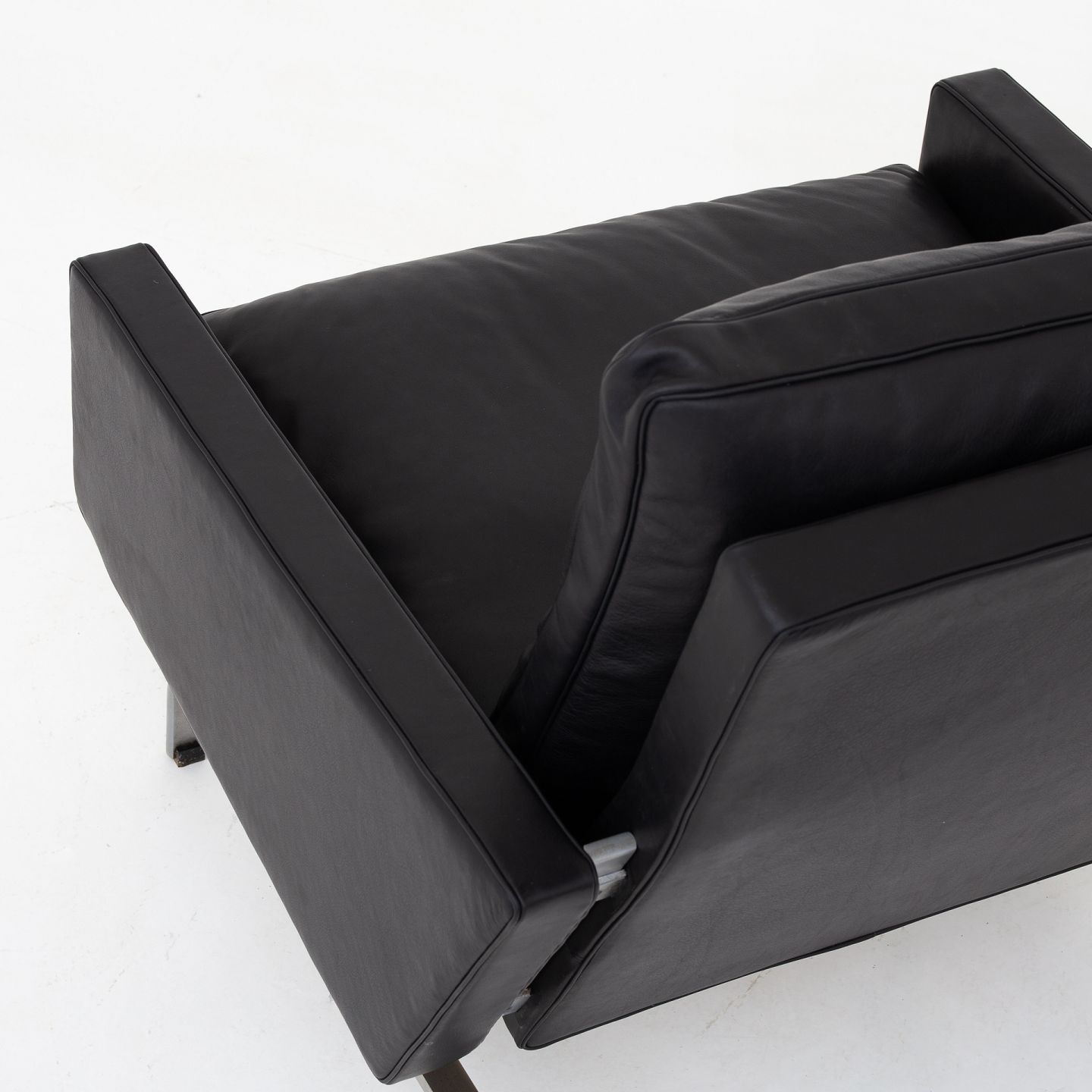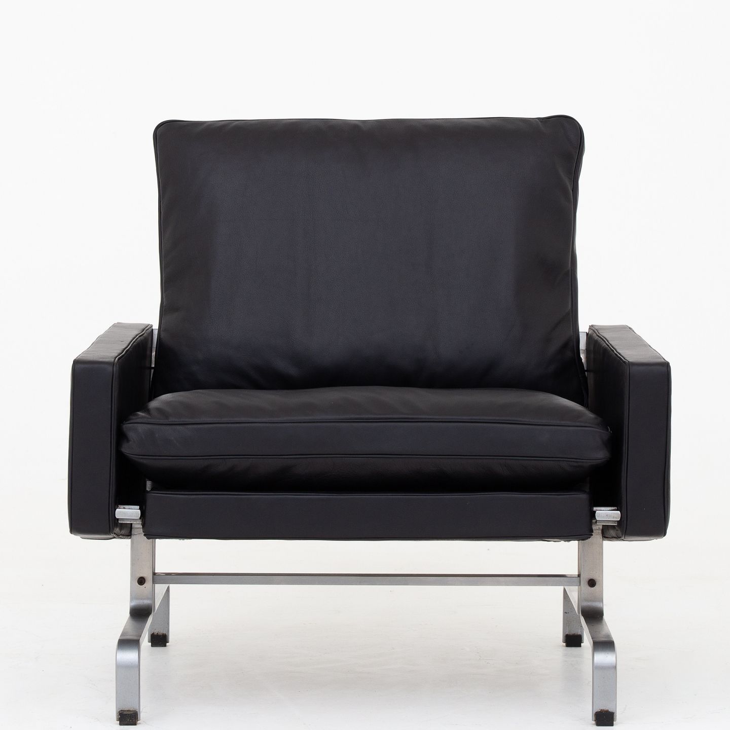 PK 31/1 - Nybetrukket lænestol i Shade-læder (Pitch Black) på stel af stål. KLASSIK tilbyder polstring af lænestolen med stof eller læder efter eget valg.