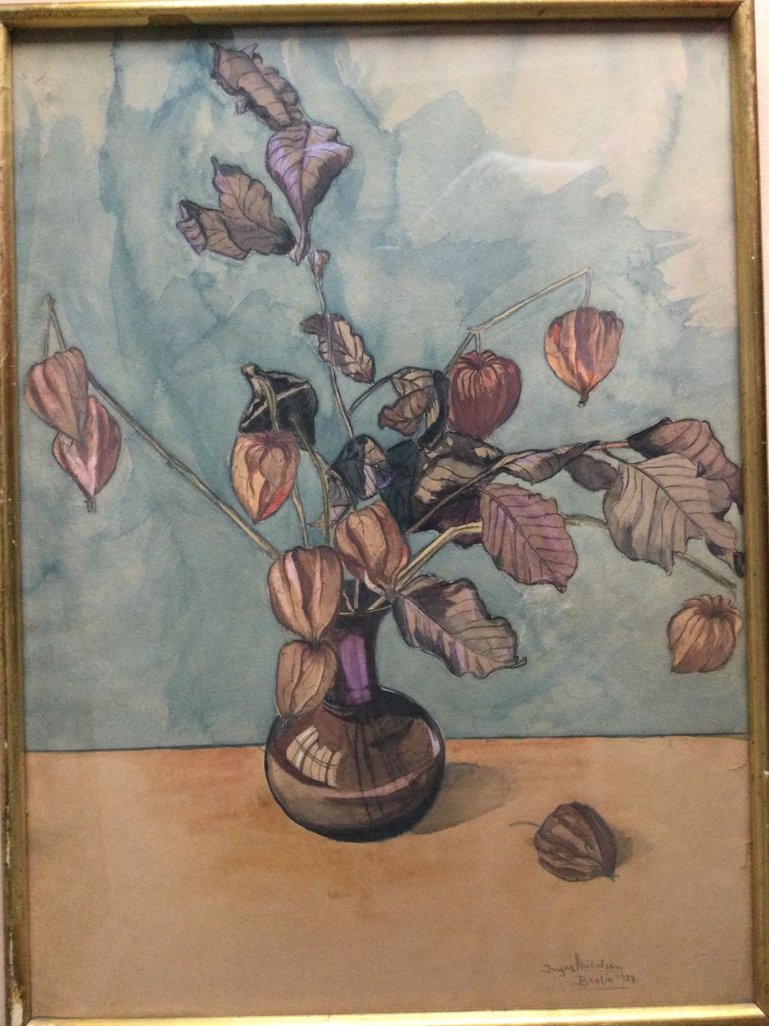 Akvarel af Inger Michelsen 1928 - Vase med Japanske lygter.