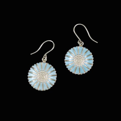 Bernhard Hertz. Marguerit / Daisy Ørekroge i sterling sølv med blå emalje. 18mm
