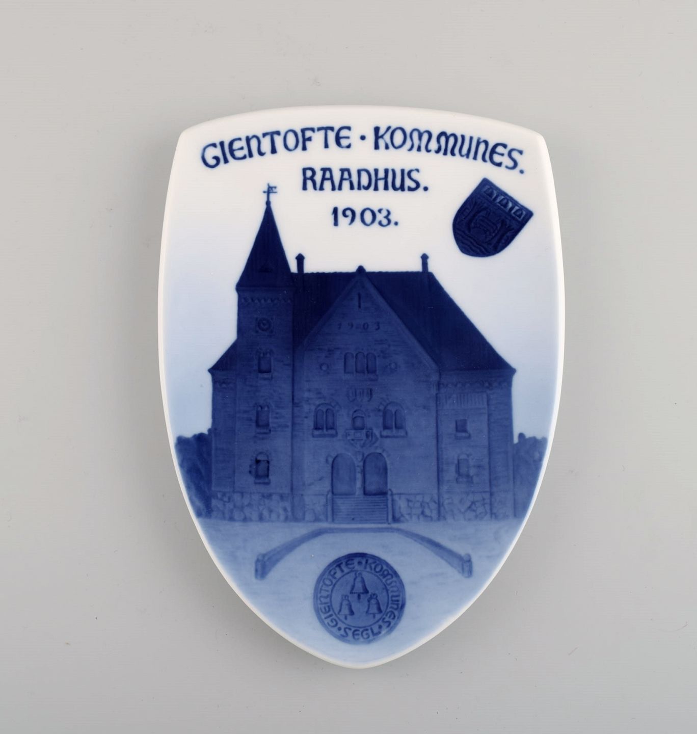 Antique Royal Copenhagen anniversary / commemorative plate in porcelain. Gentofte Town Hall. Dated 1903.