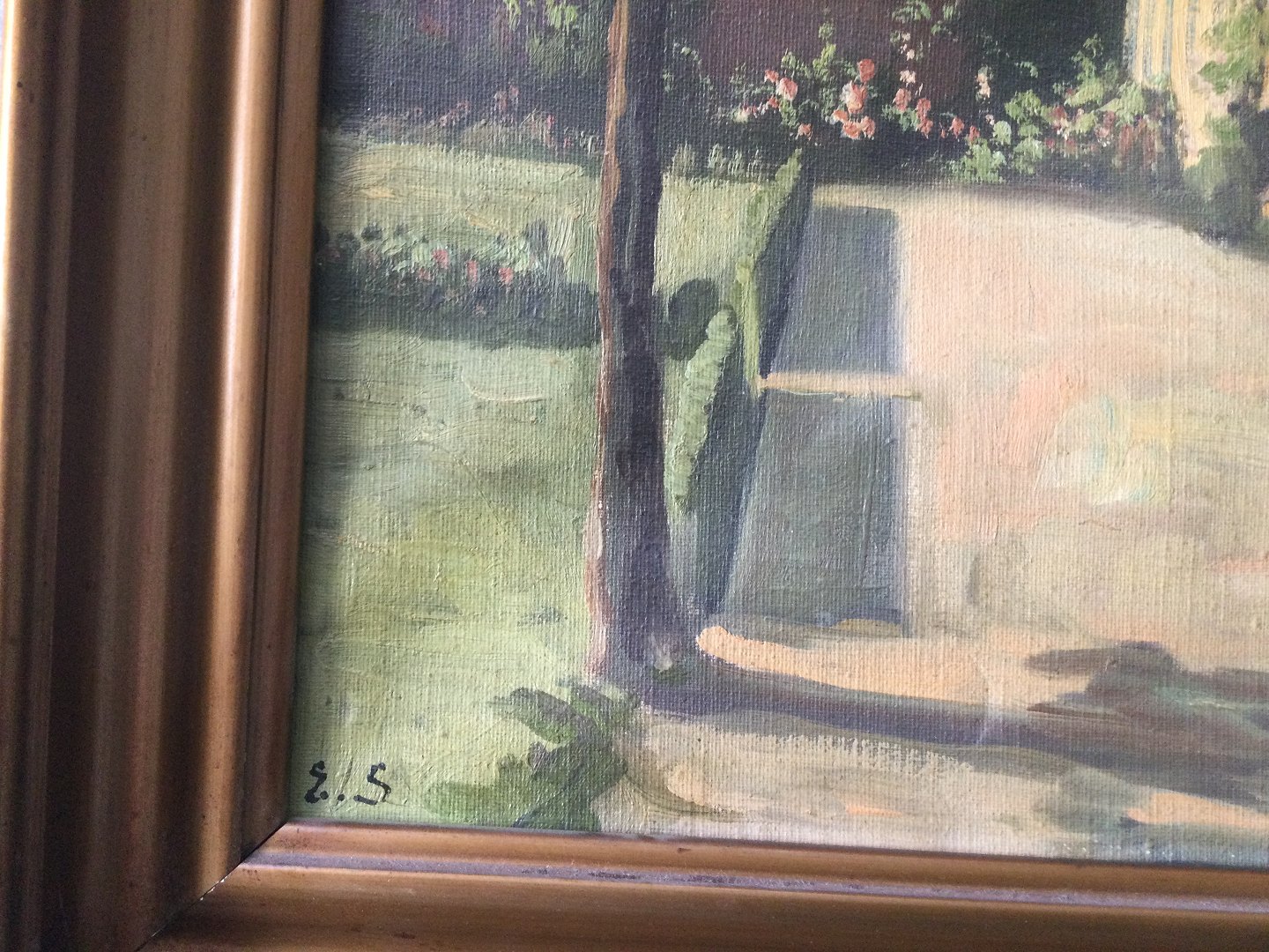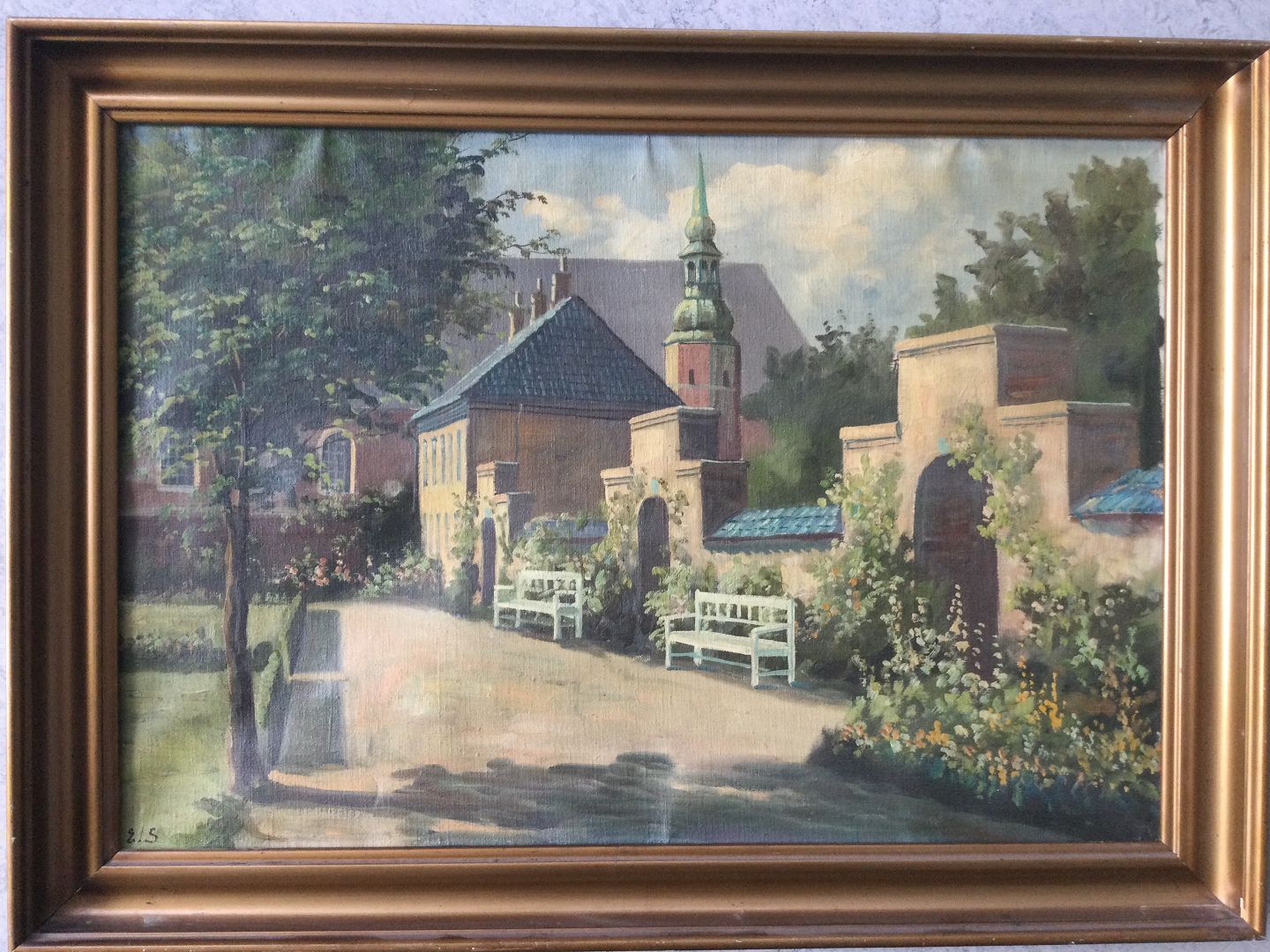 Maleri af Ernst Goldschmidt - Parti fra Det Kongelige Biblioteks Have.