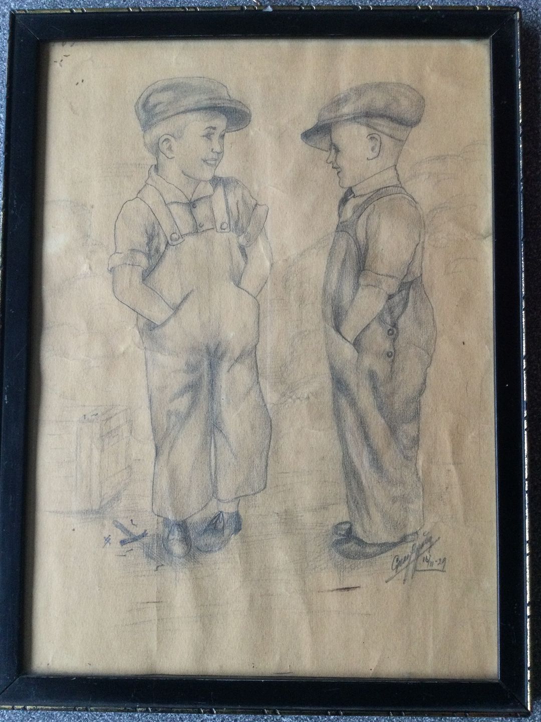Tegning 1929 - to drenge i samtale.