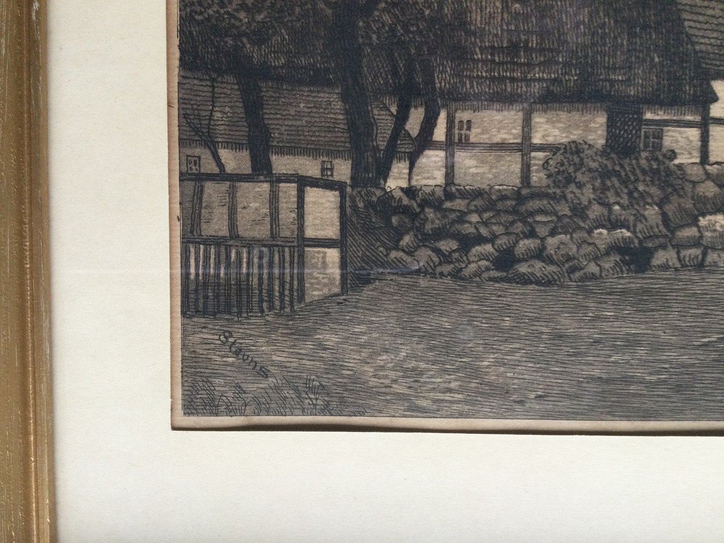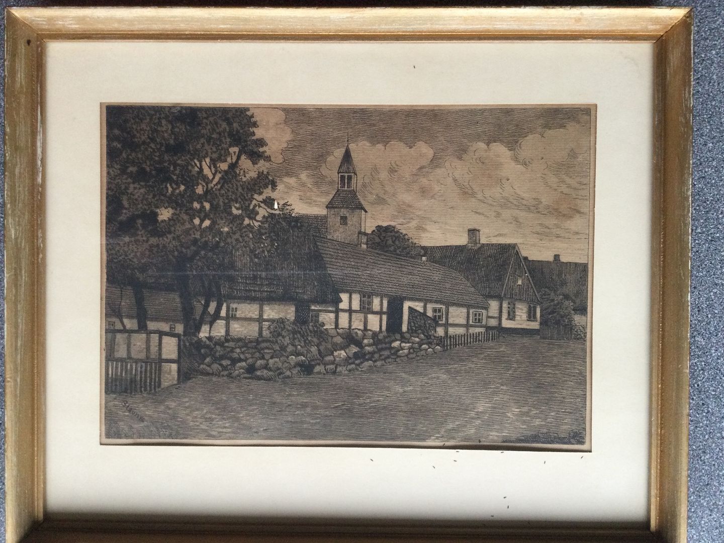 Radering af A.E. Jensen-Stevns - gadeparti fra Gudhjem, Bornholm.
