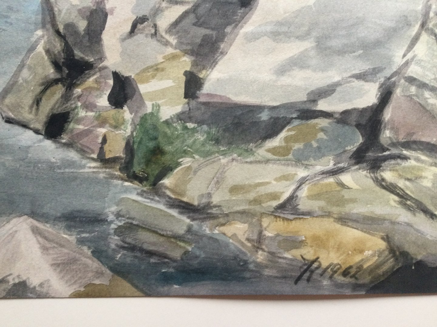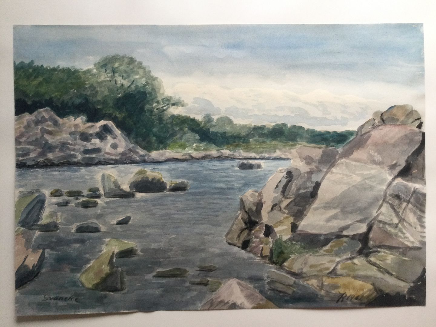 Akvarel - kystparti ved Svaneke 1962.