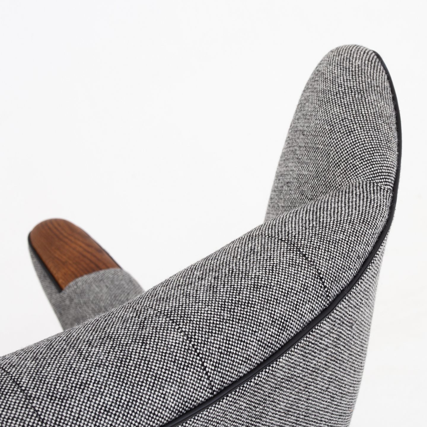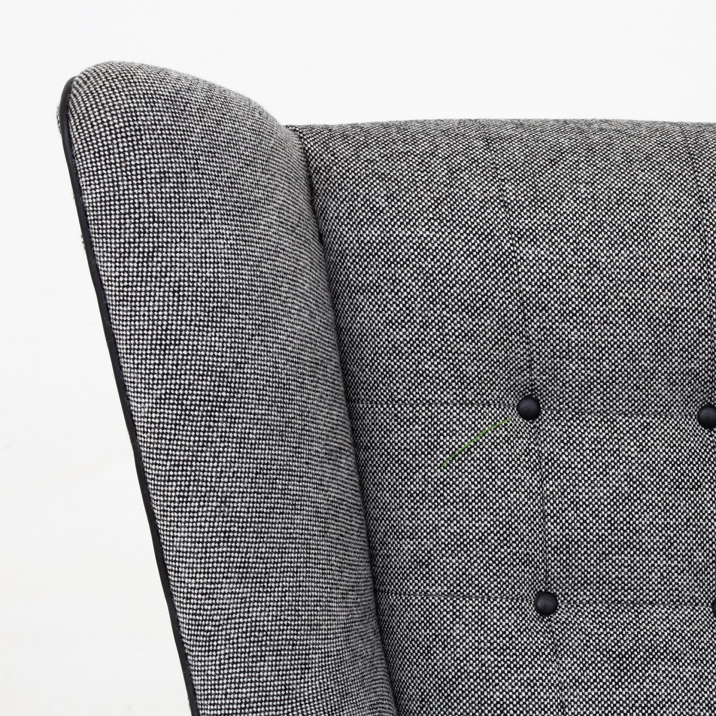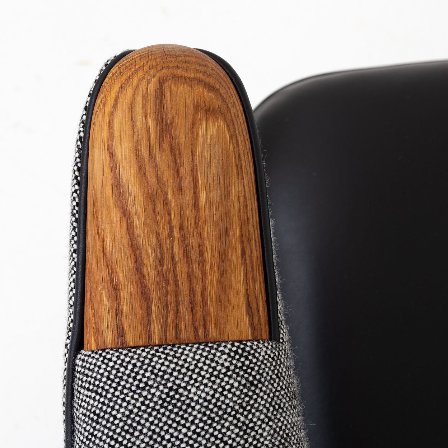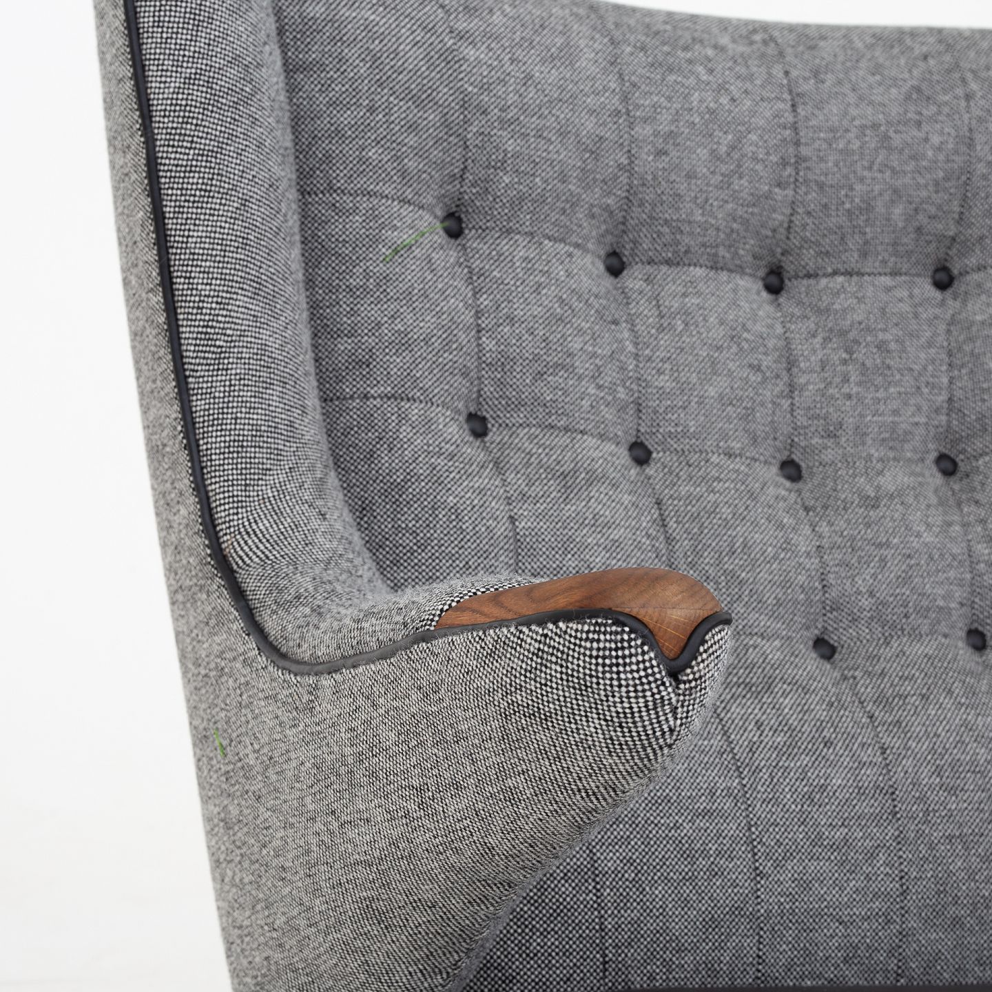 AP 19 - Reupholstered Papa Bear chair in Hallingdal 65 wool (code 166) w. seat and buttons in black leather. Paws and legs in oak. KLASSIK offers upholstery of the Papa Bear chair in fabric or leather of your choice.