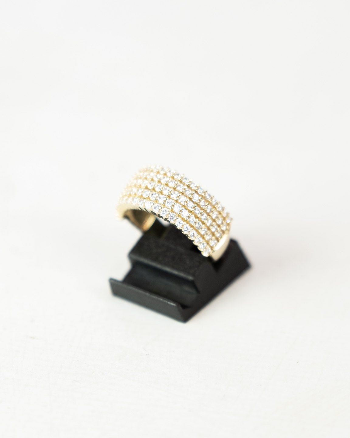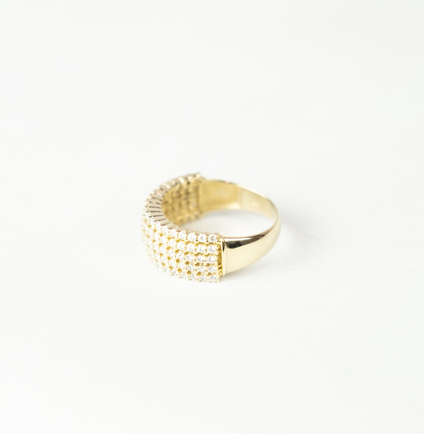 Ring with clear stones and of 14 carat gold.