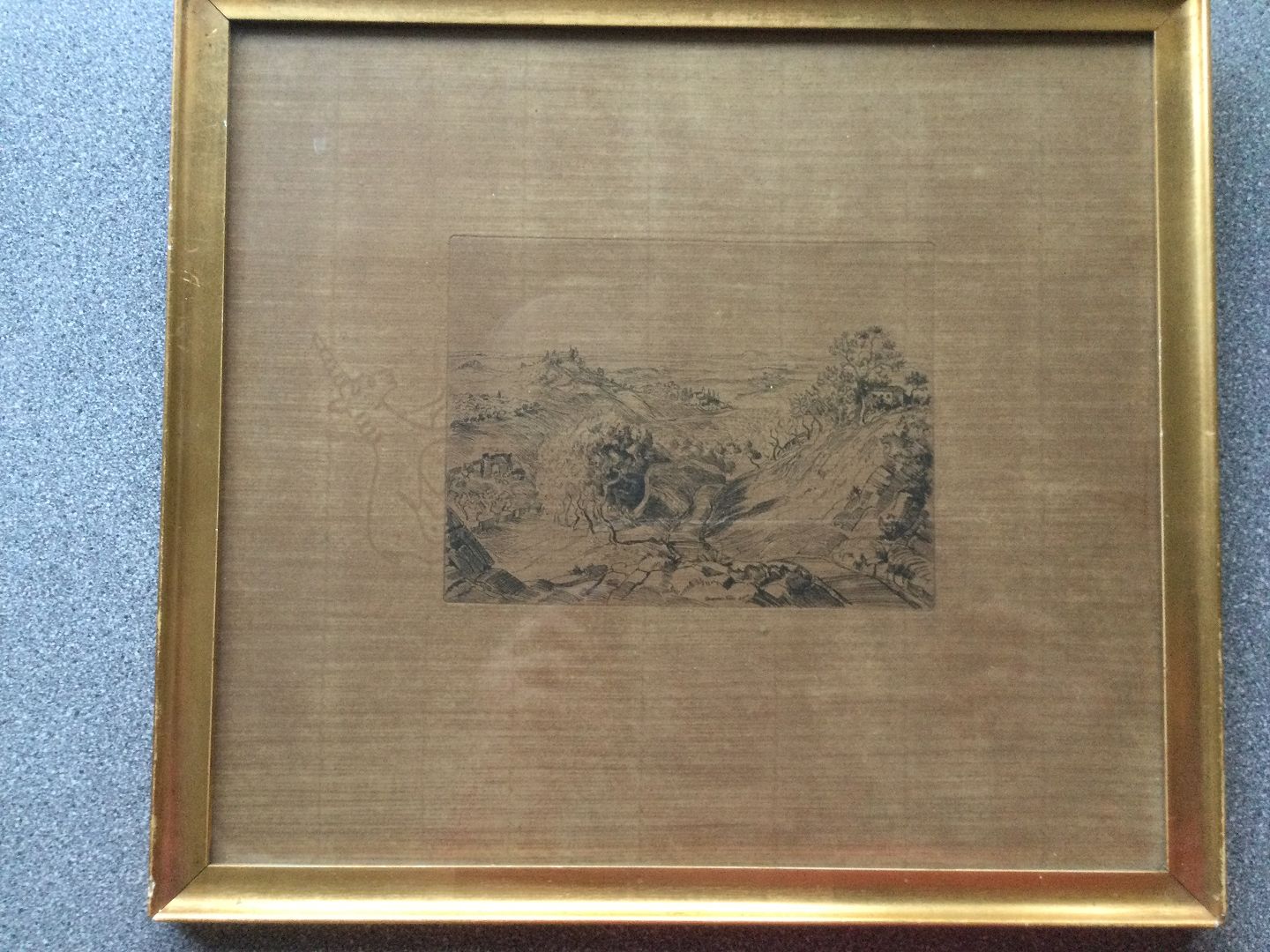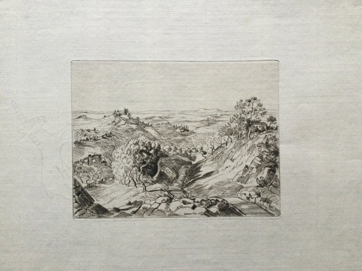 Radering af Andreas Friis 1924 - Hulvej ved den italienske by San Gimignano, Toscana.