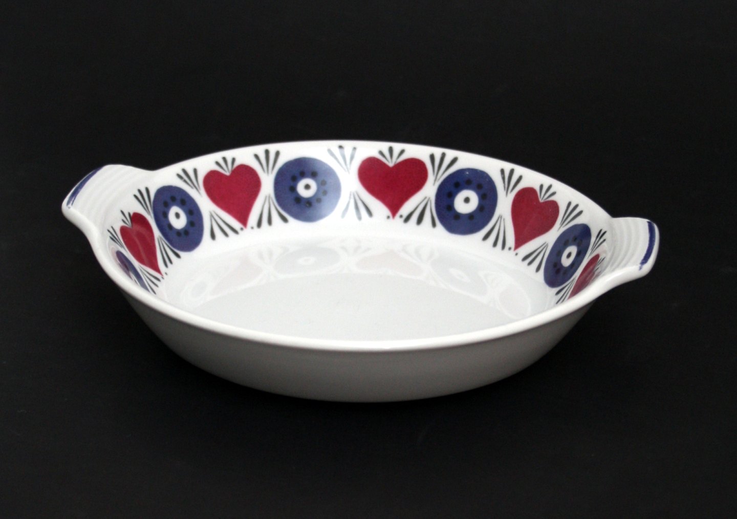 Skål med ører. Formnr. 621. Diameter 17 cm. Længde 19 cm. Højde 3,6 cm. Pris: 175 kr. stk. Lager: 1