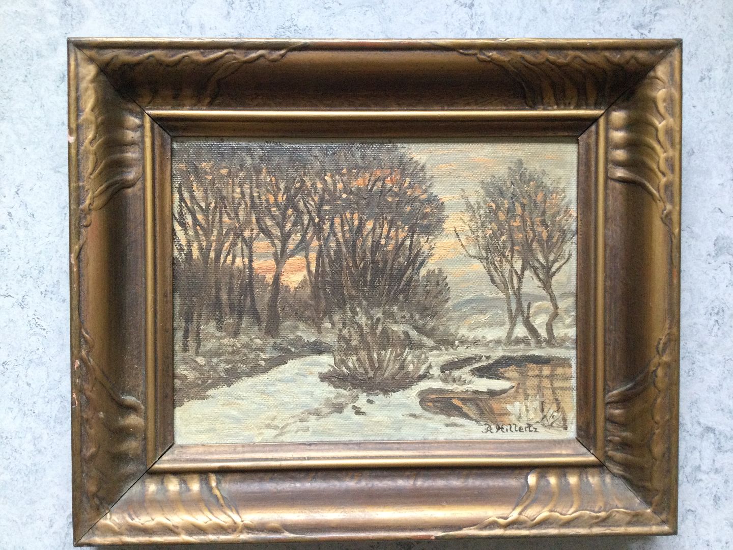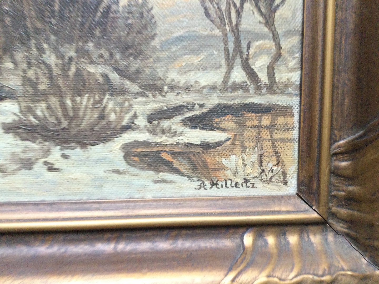 Maleri af A. Hillertz - Vinterlandskab.