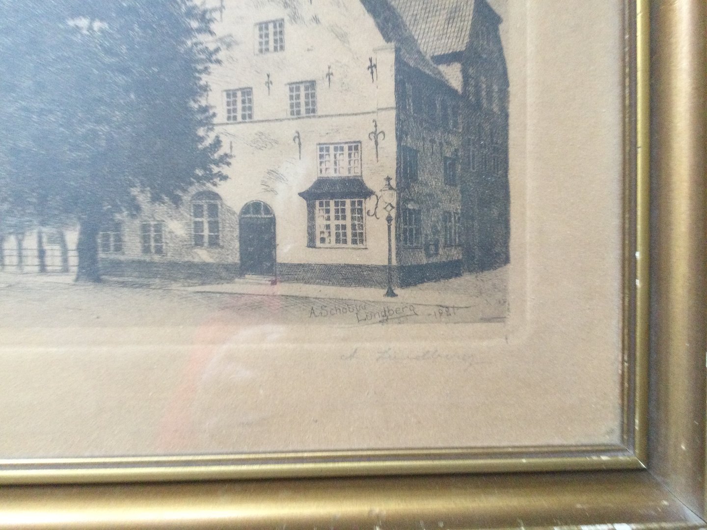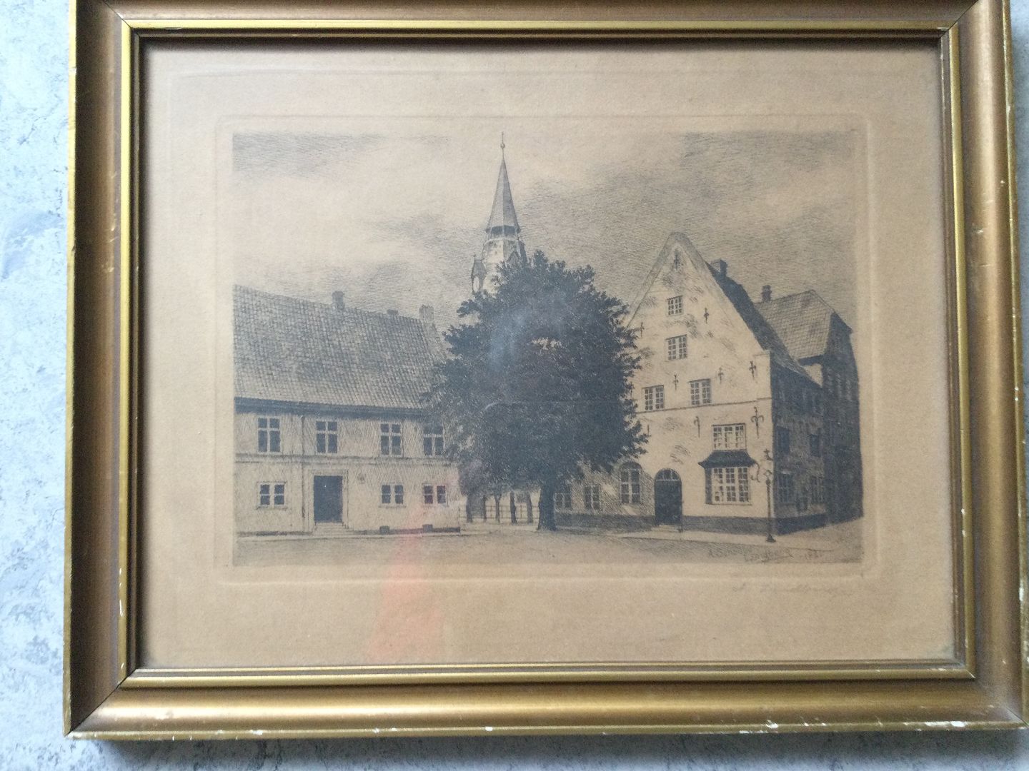 Text available in Danish: Radering af Anker Schouw-Lundberg 1921 - Gavlhuset på Tønder Torv