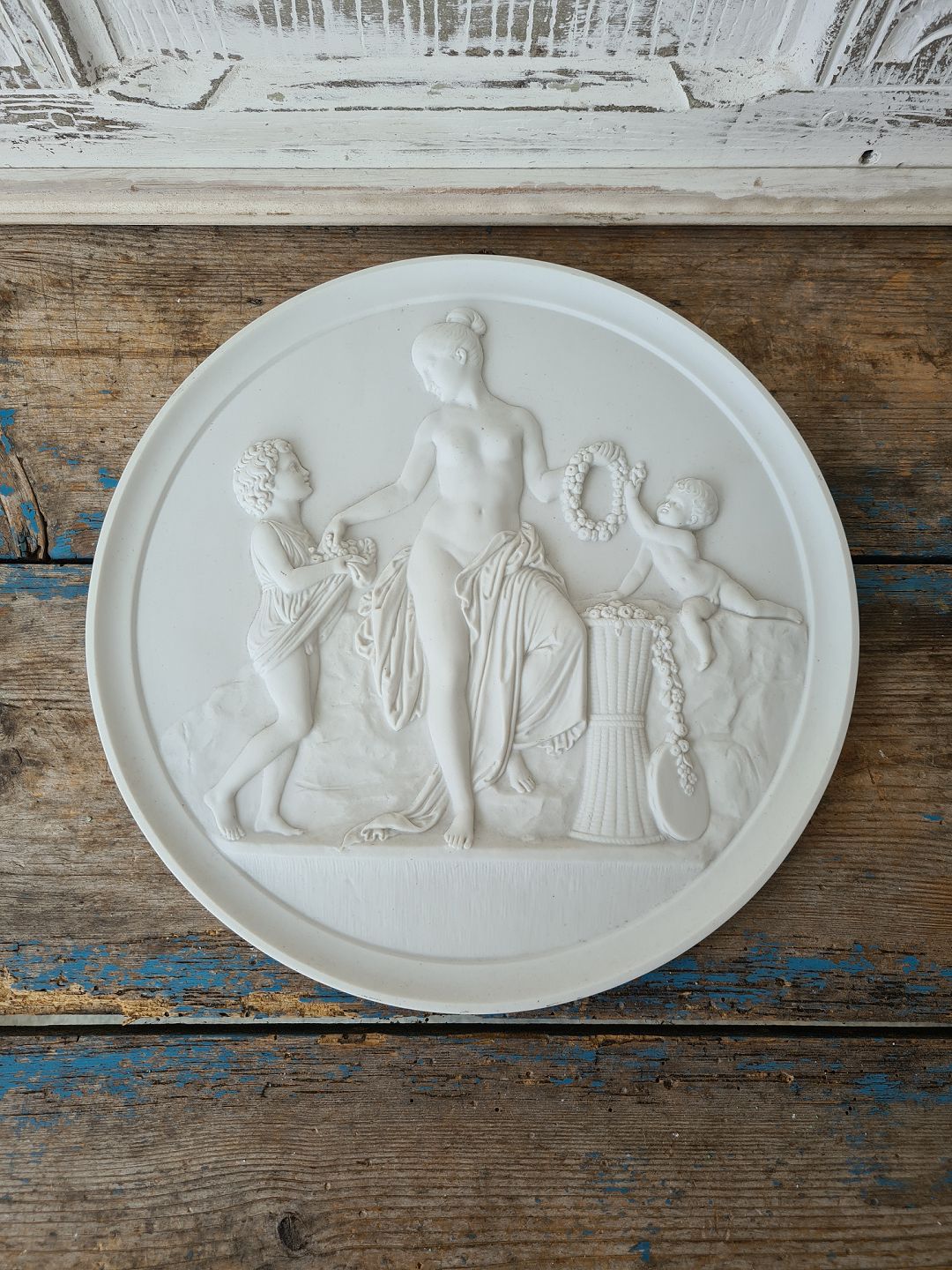 B&G Biscuit Platte Barndom og Forår efter Thorvaldsens original fra Rom 1836.