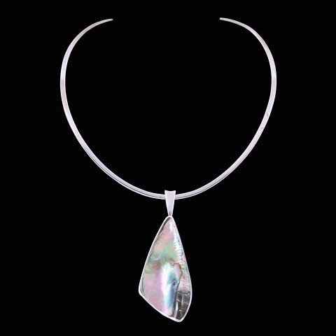 Palle Bisgaard - Denmark. Halsring #6 i sterlingsølv med stort Abelone Vedhæng #4. 1960erne
