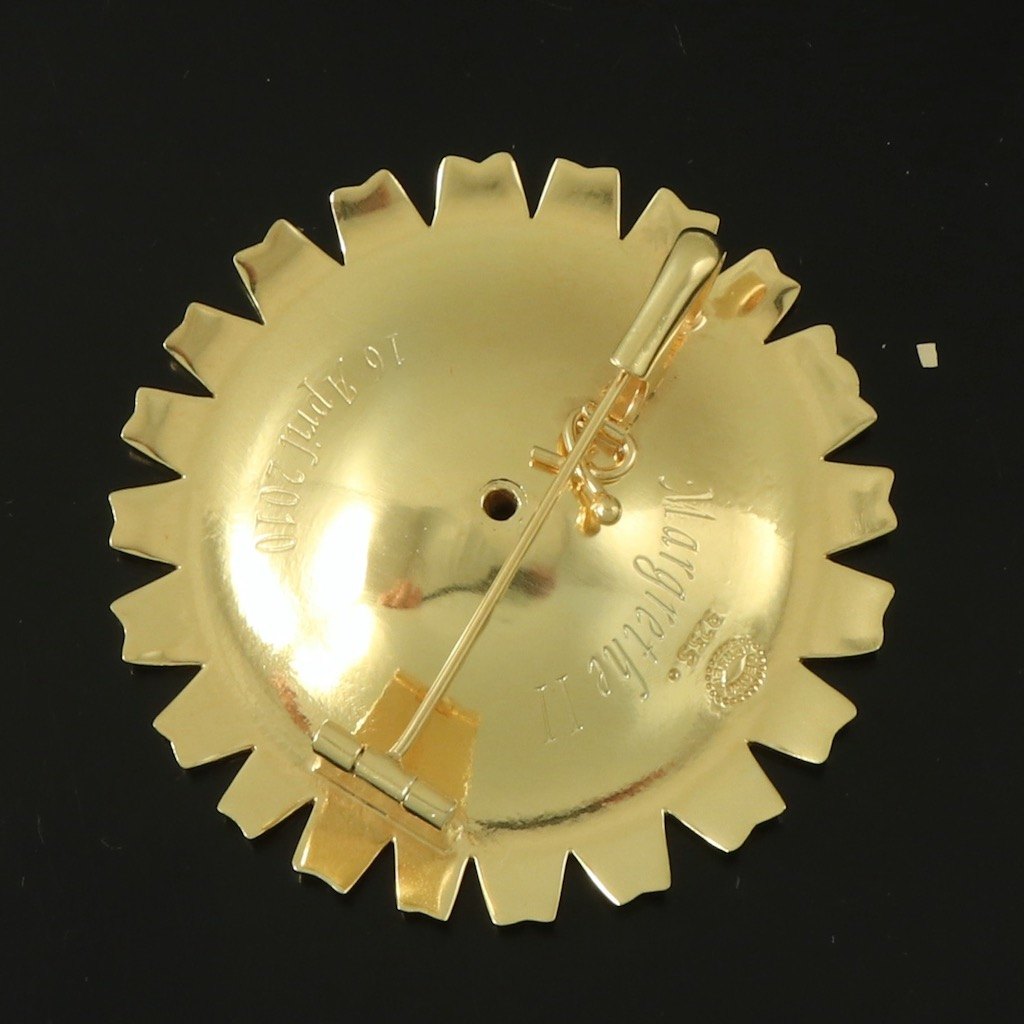 Georg Jensen. Gilded Silver Daisy Brooch / Pendant with Rose Enamel. 50mm